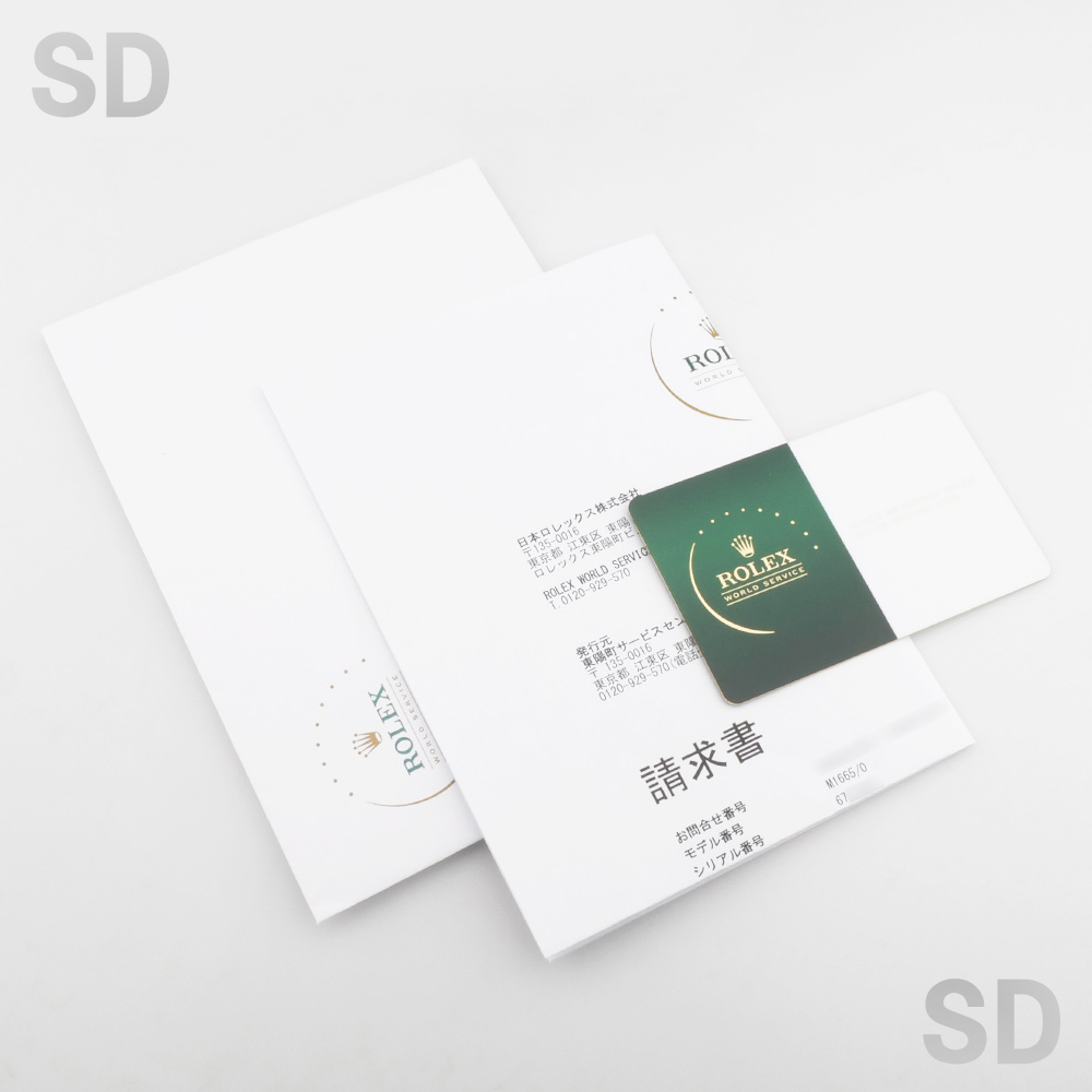 付属品につきましては、メンテナンスの際に発行されたサービス保証書(NFC機能搭載ロレックスサービスカード(2027年10月迄)、修理明細書と、サテンドールオリジナルBOXが付いております。
