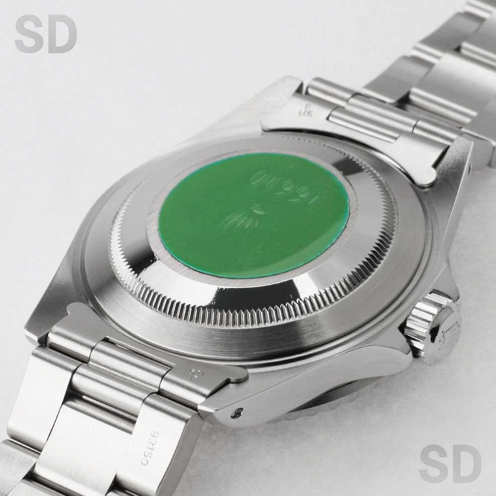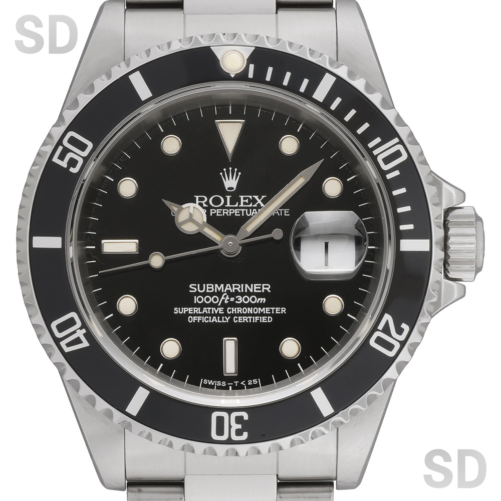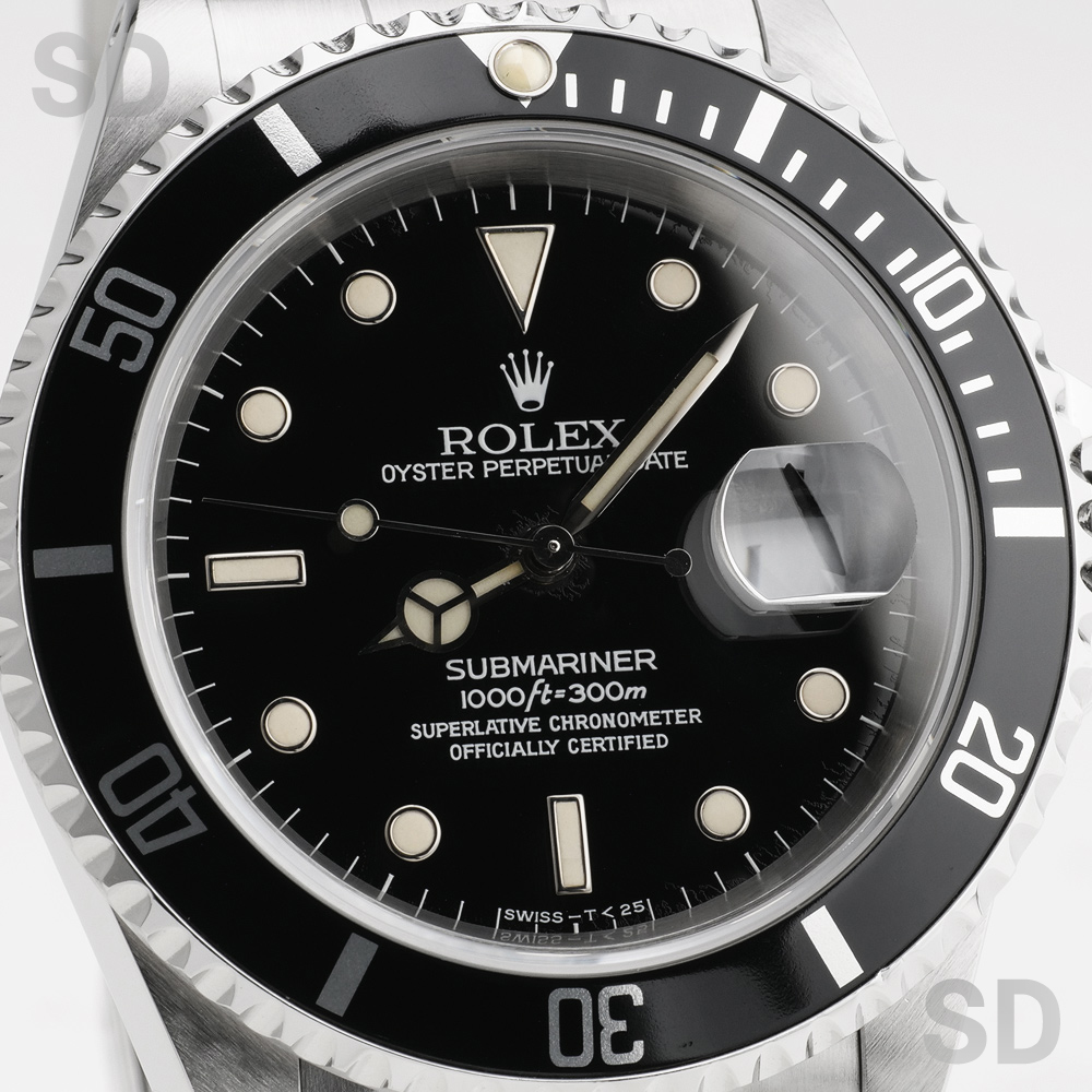 オイスターケース、回転ベゼル、ねじ込み式リューズを搭載して「潜水艦」という意味を持つサブマリーナー。その中でも1988年頃より2010年まで製造されていたRef.16610は、20年以上続くロングセラーモデルです。ダイバーズウォッチとしての安心の300m防水に日付表記を備え、旧式モデルとはいえロレックスの代表的な最高ムーブメントとされるCal.3135搭載。後継機モデルと比べても重量が軽く腕元の重み圧迫感を感じないとして、とても実用的で毎日タフにご使用いただけます。このモデル1本で事足りる程の末永く愛用できるモデルです。
