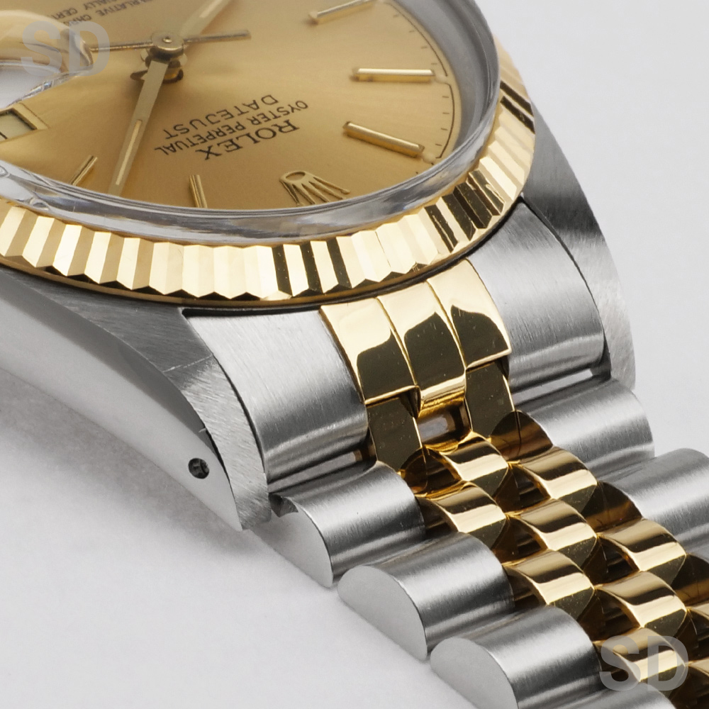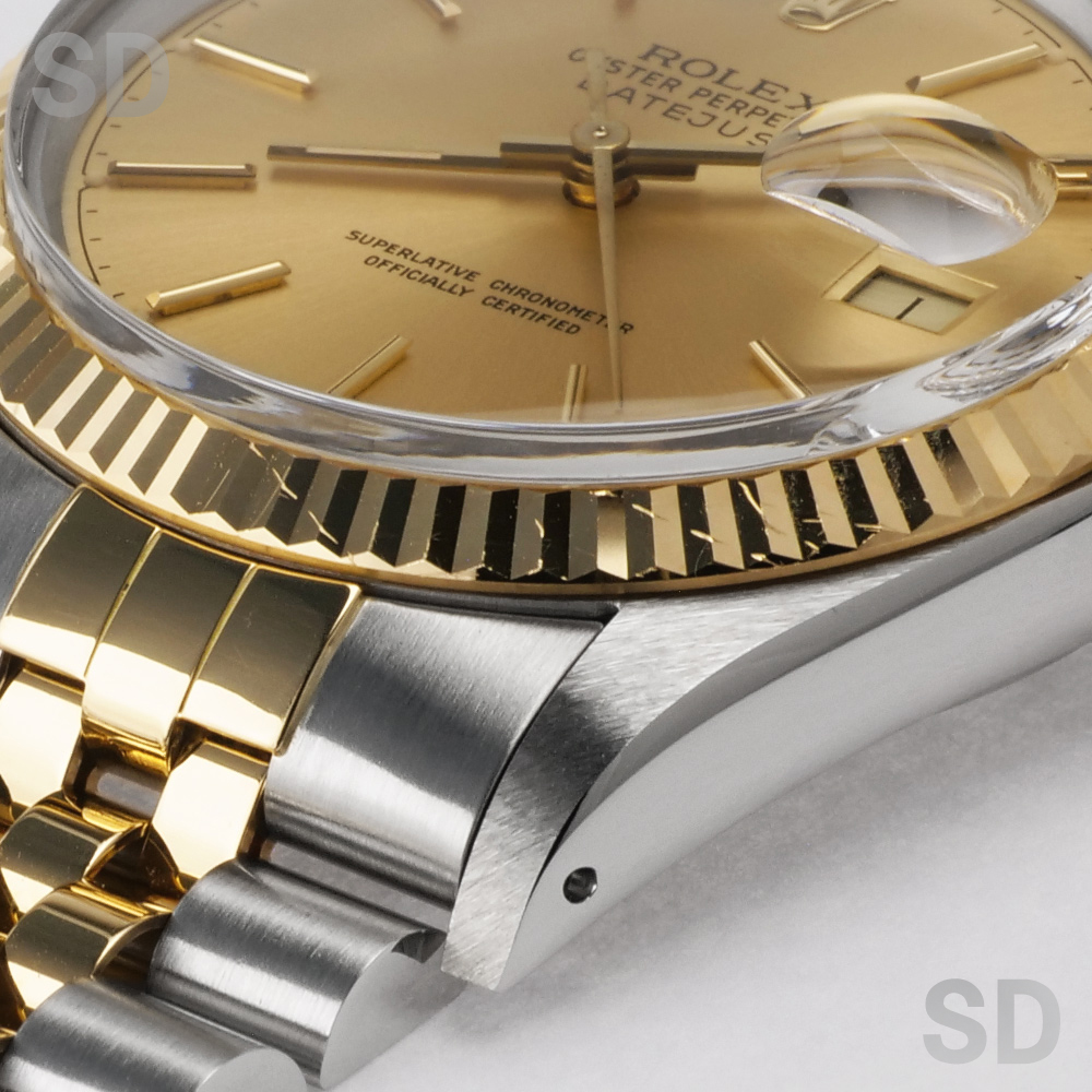 ケースサイドやブレスレット側面は、光にかざすと確認できる程度の擦り小傷がございますが、特筆すべき大きな傷はありません。ラグのエッジなどもしっかりとしており、ブレスレットも伸びを感じさせず、製造年式をご考慮して頂いても極めて良好なコンディションと感じます。