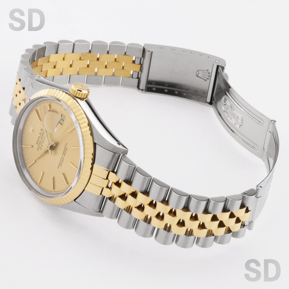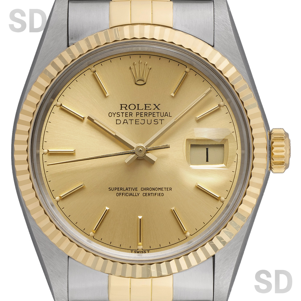 1970年代後半から80年代後半に製造されたデイトジャストシリーズとなる16013。このシリーズよりデイトジャストはハイビートとなるCal.3035を搭載。日付けの早送りも可能となりとても実用的となりました。後継機モデルとなる16233ととても類似するデザインではありますが、こちらのモデルではまだ強化プラスチック風防を装備しており、プラスチック独特の温かみある雰囲気がヴィンテージウォッチとしての風格もしっかりと漂わせます。