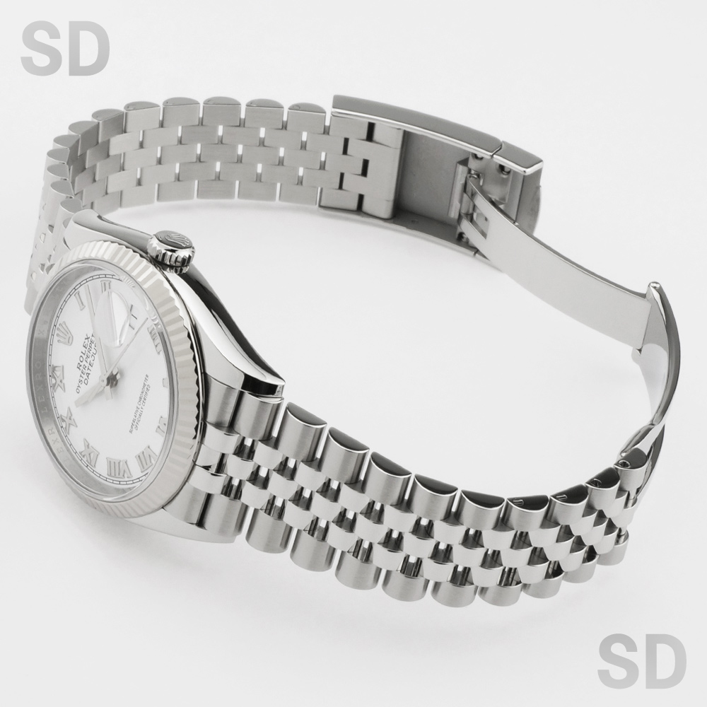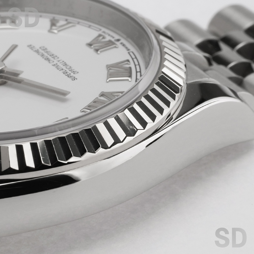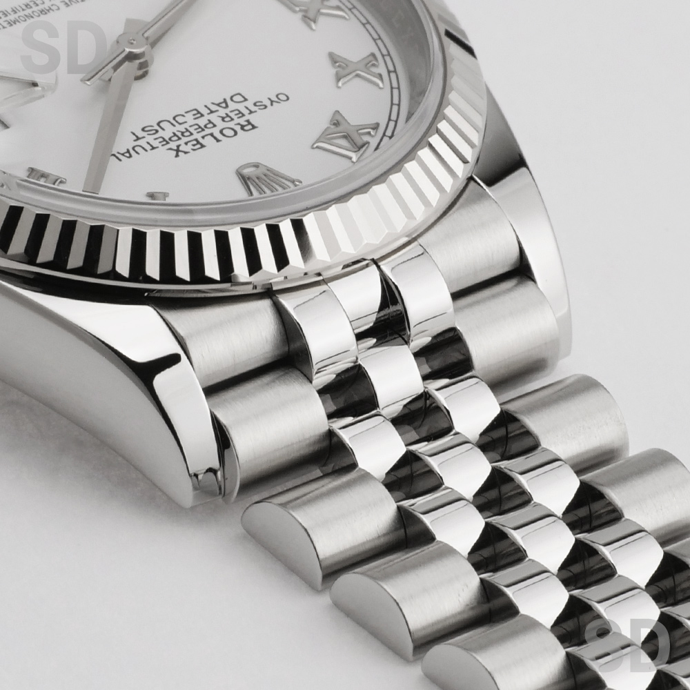 清潔感と気品を兼ね備えたホワイトローマダイアルを採用し、クラシカルな美しさを際立たせるジュビリーブレスレットを装着した上品な一本でございます。
