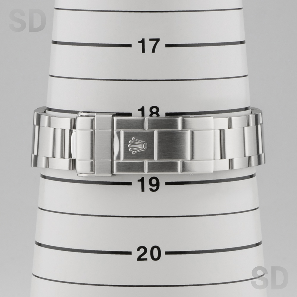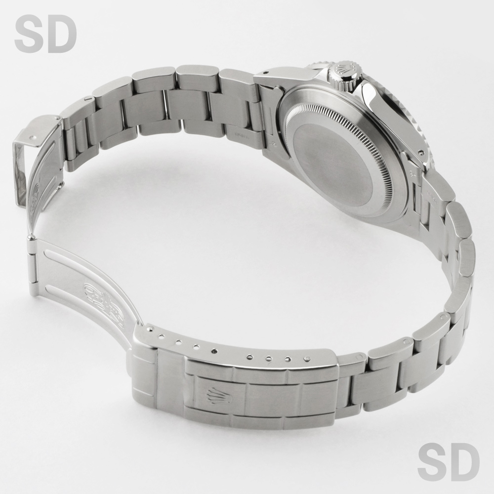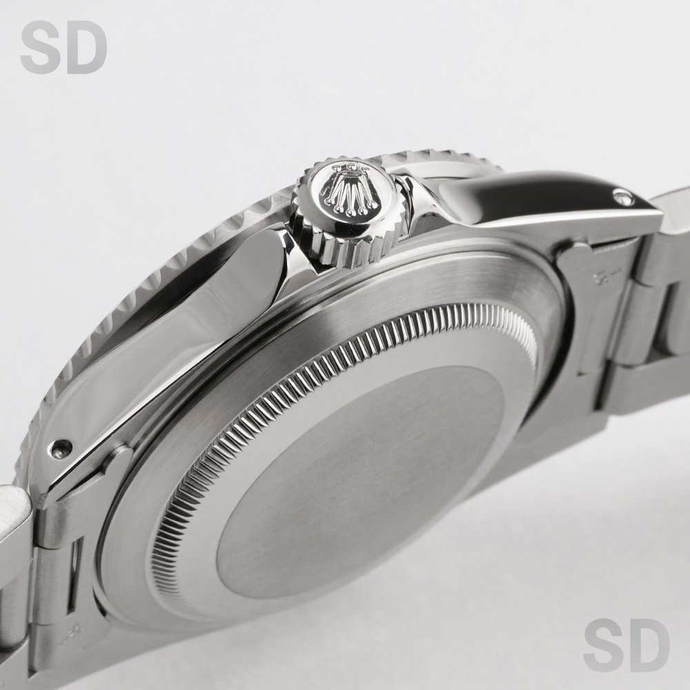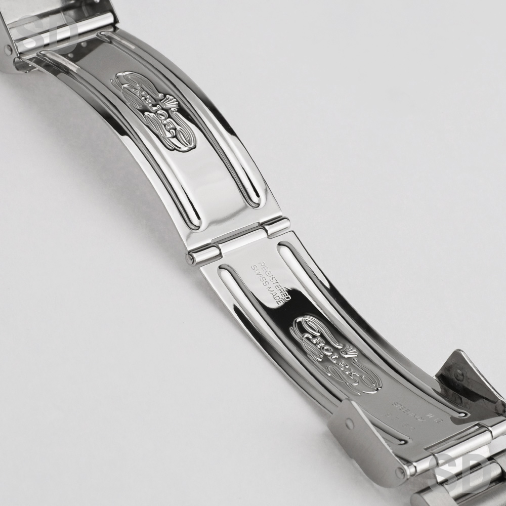外装に関しましては、当店提携の修理工房にて研磨を施しております。ベゼル外周やリューズ、フラッシュフィット部分にわずかに取り切れない小傷が残る程度で、特筆すべき大きなダメージは一切ございません。ブレスレットの伸びも少なく、年式を考慮すれば美しいコンディションといえる仕上がりです。