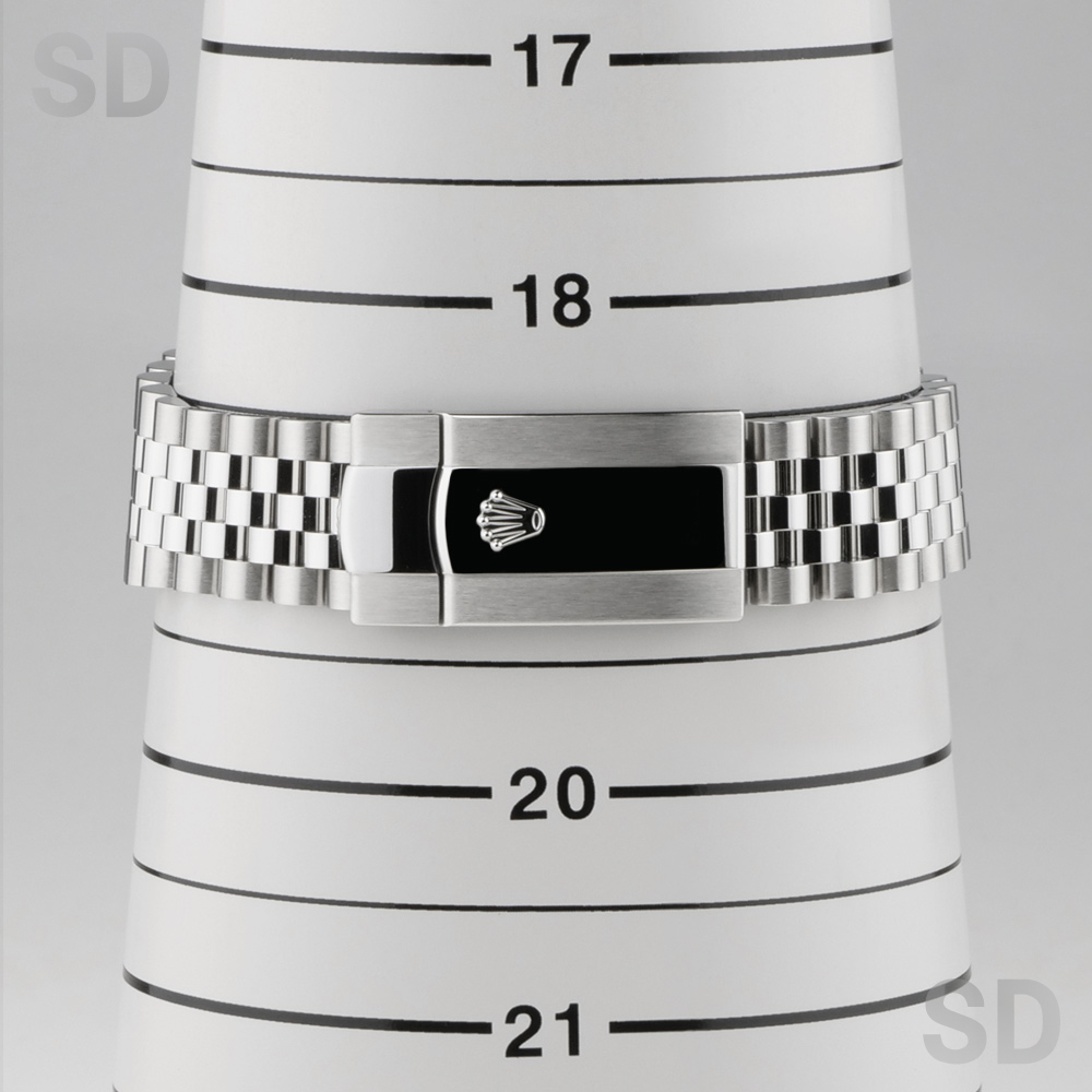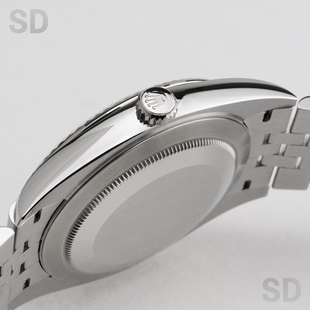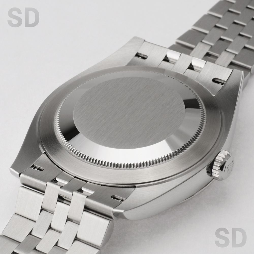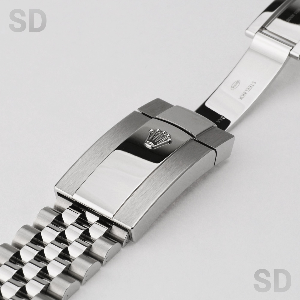 こちらの個体は濃いグレーカラーのスレート文字盤に、グリーンに縁取られたローマインデックスが特徴の、ウィンブルドン・ダイアルがセットされたモデル。ジュビリーブレスレットが装着されております。
