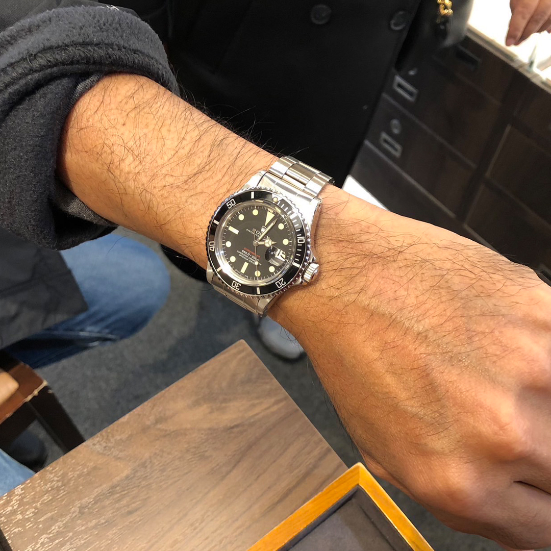 ベゼルやブレスレット表面、バックル、クラスプなどには、光にかざすと確認出来る程度の擦り小傷がございますが、特筆すべき大きな傷もなくコンディションはとても良好。