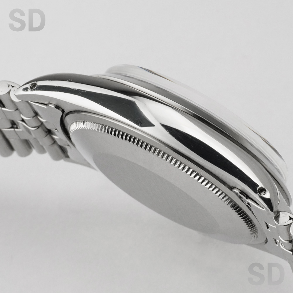 ブレスレットは珍しいジュビリーブレスレットが装備されており、表面は薄っすらとした小傷とペン先程度の小さな打ち傷がございますが、どれも光にかざすと確認できる程度の傷です。また、僅かにブレスレットに伸びを感じますが、製造年式をご考慮していただければ良好な範囲であると感じます。