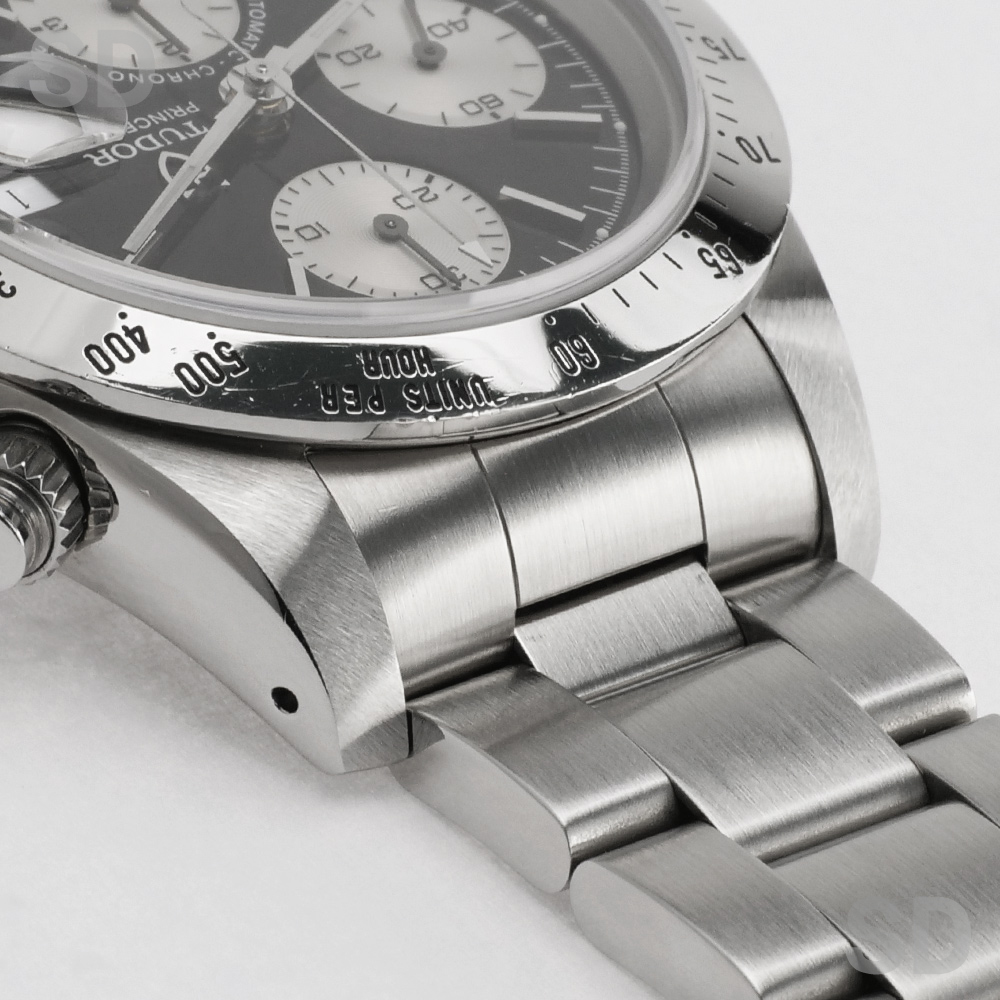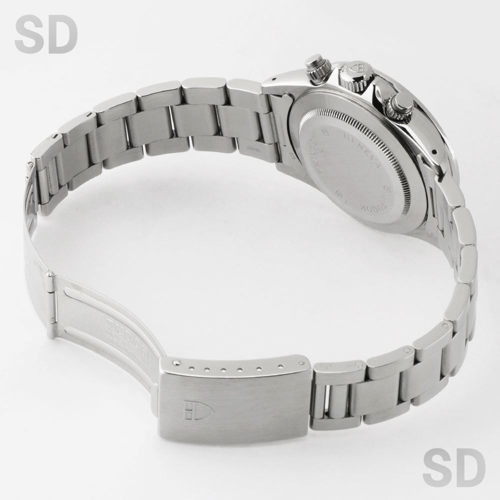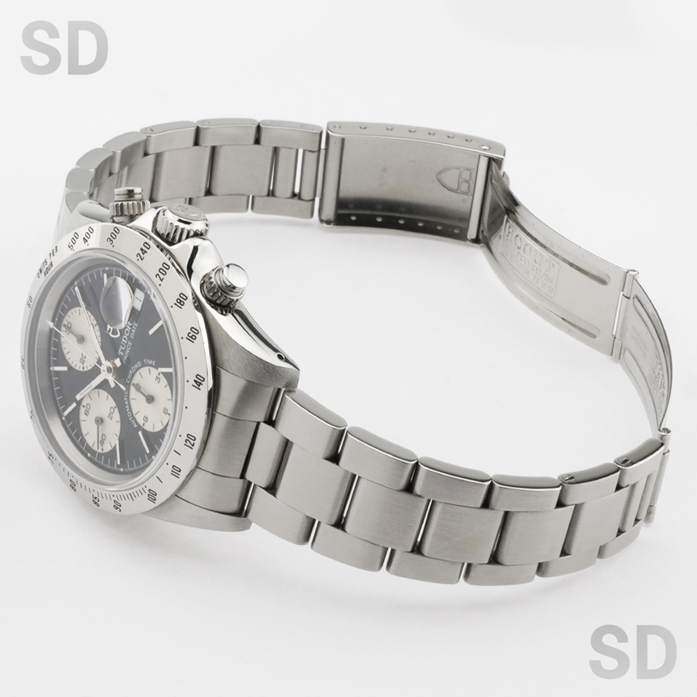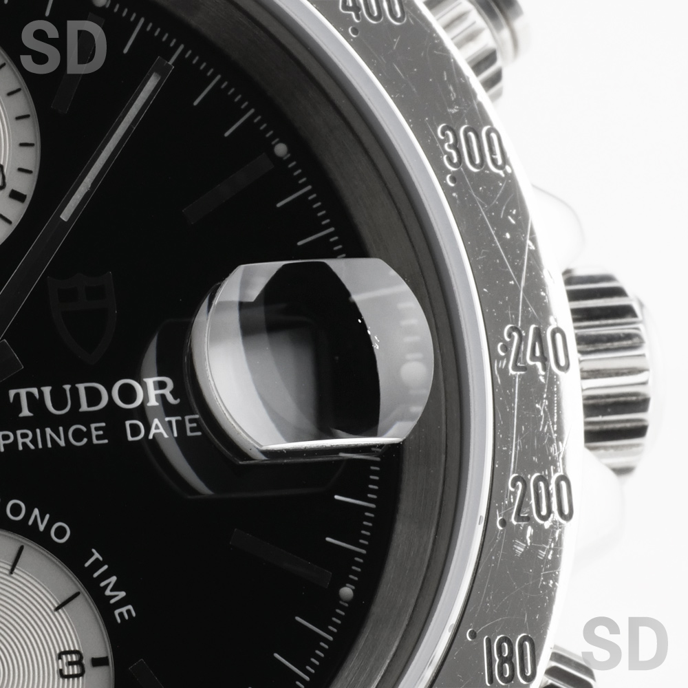かつてロレックスのデュフュージョンブランドとして誕生したチュードル(現・チューダー)。こちらは当時チュードルとして親しまれていた時代のクロノグラフモデルであり、1995年頃〜2000年頃の短期間のみ製造された第3世代となる最後のクロノタイムです。クロノタイムは、このモデルからサファイヤクリスタルガラスになった事で日常でも比較的タフにご使用出来るモデルとなりました。非常にマニア向けなモデルですが、厚みあるデザインが当時のチュードルらしいモデルといえます。