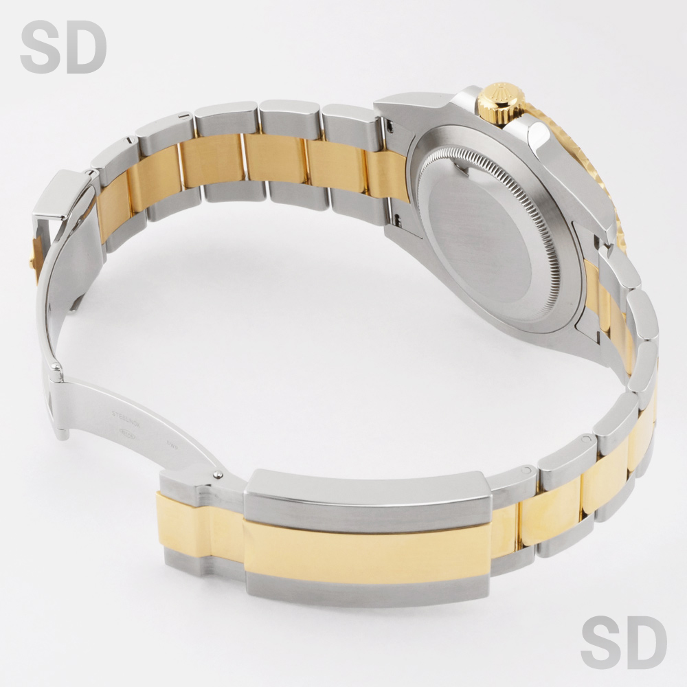 コンビサブはイエローゴールドの華やかさを程よく引き締め、控えめながらも確かな存在感を放つラグジュアリースポーツウォッチでございます。ぜひお早めのご検討をお勧めいたします。