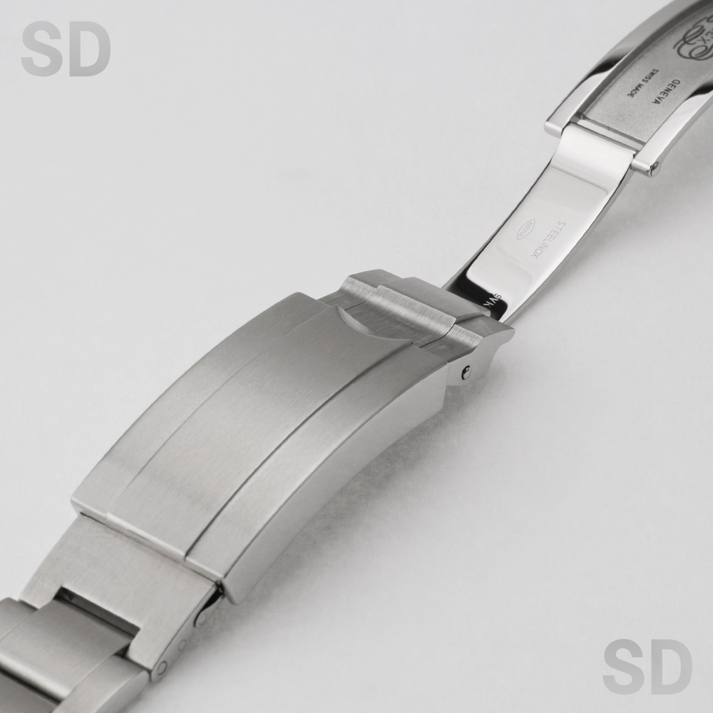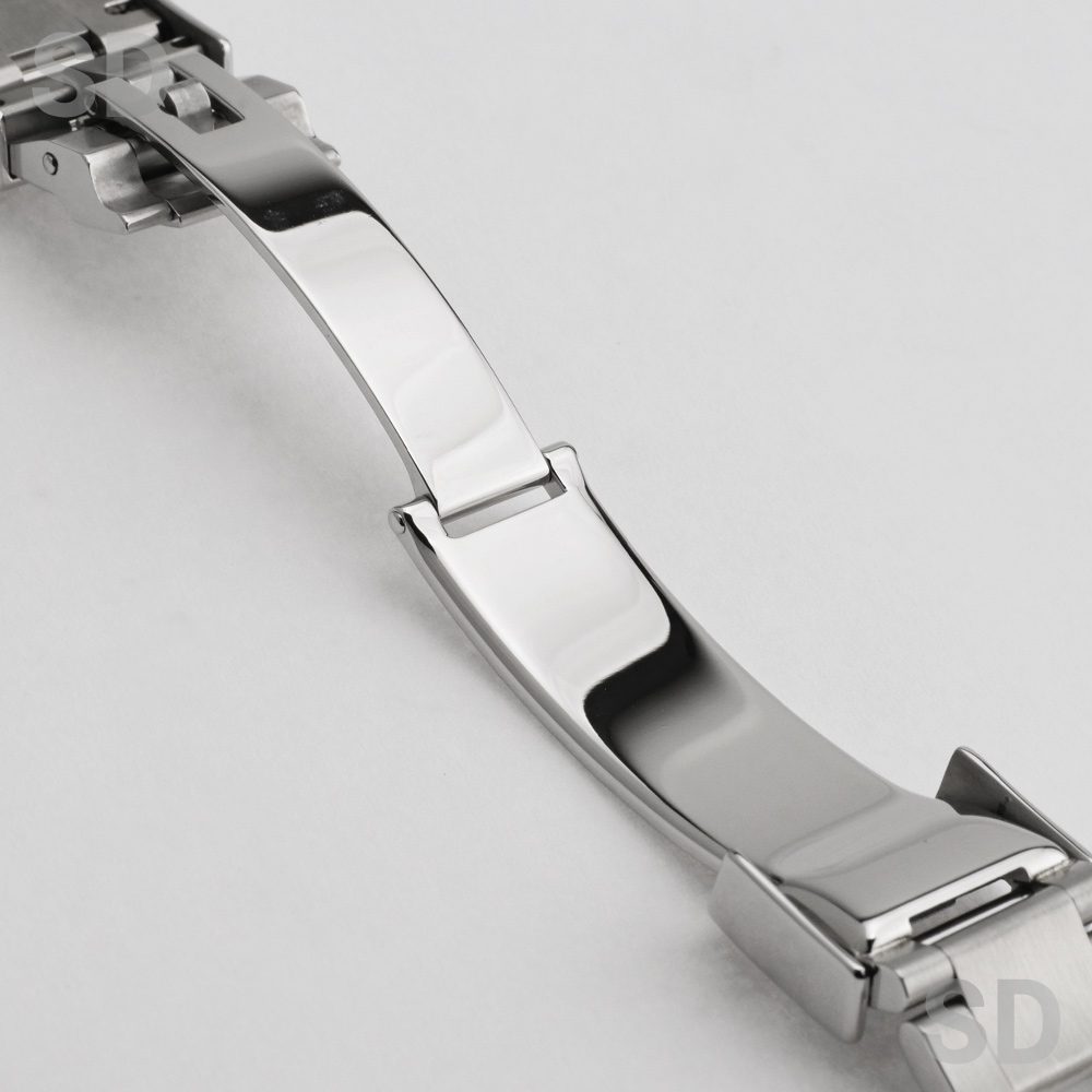 本モデルは、深海での過酷な環境下でも高い防水性能を発揮するプロフェッショナル仕様のモデルであり、クラスプ(バネ板)には梨地仕上げが施されている仕様となっております。マットな質感が際立ち、堅牢さと上品さを兼ね備えた仕上がりが魅力です。