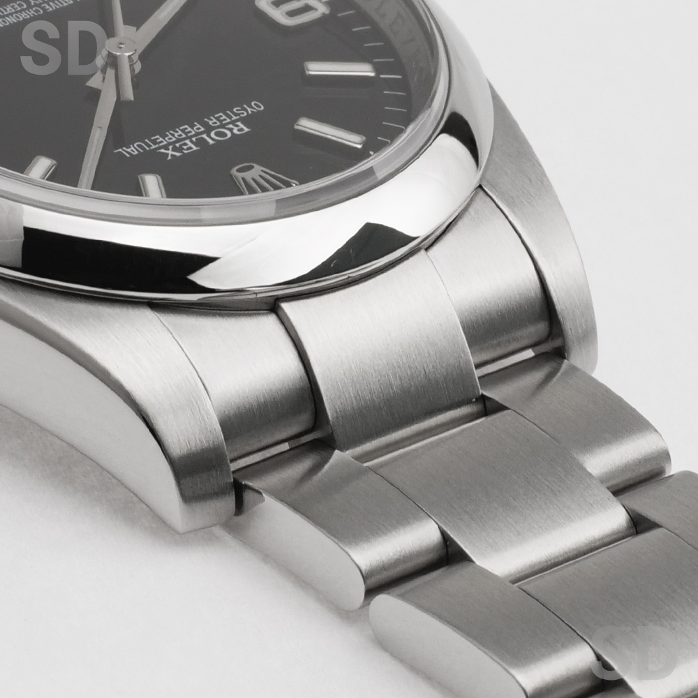 状態です。外装につきましては、専門の修理工房にて研磨を施しております。そのため、ベゼル、リューズ、ラグ、フラッシュフィット、バックル周辺に取りきれない小傷が見受けられる程度であり、全体として特筆すべきダメージはございません。外観は大変良好な状態を維持しており、光沢や質感も十分に保たれております。