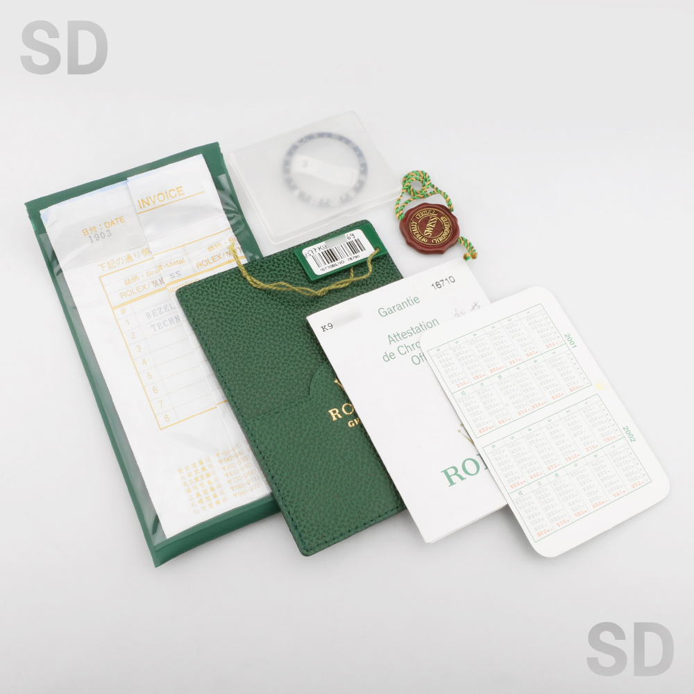 2004年にベゼルディスク交換が行われており、その際のメーカー修理明細書および黒ベゼルディスクが付属いたします。交換黒ベゼルには小傷およびペン先程度の打ち傷がございます。