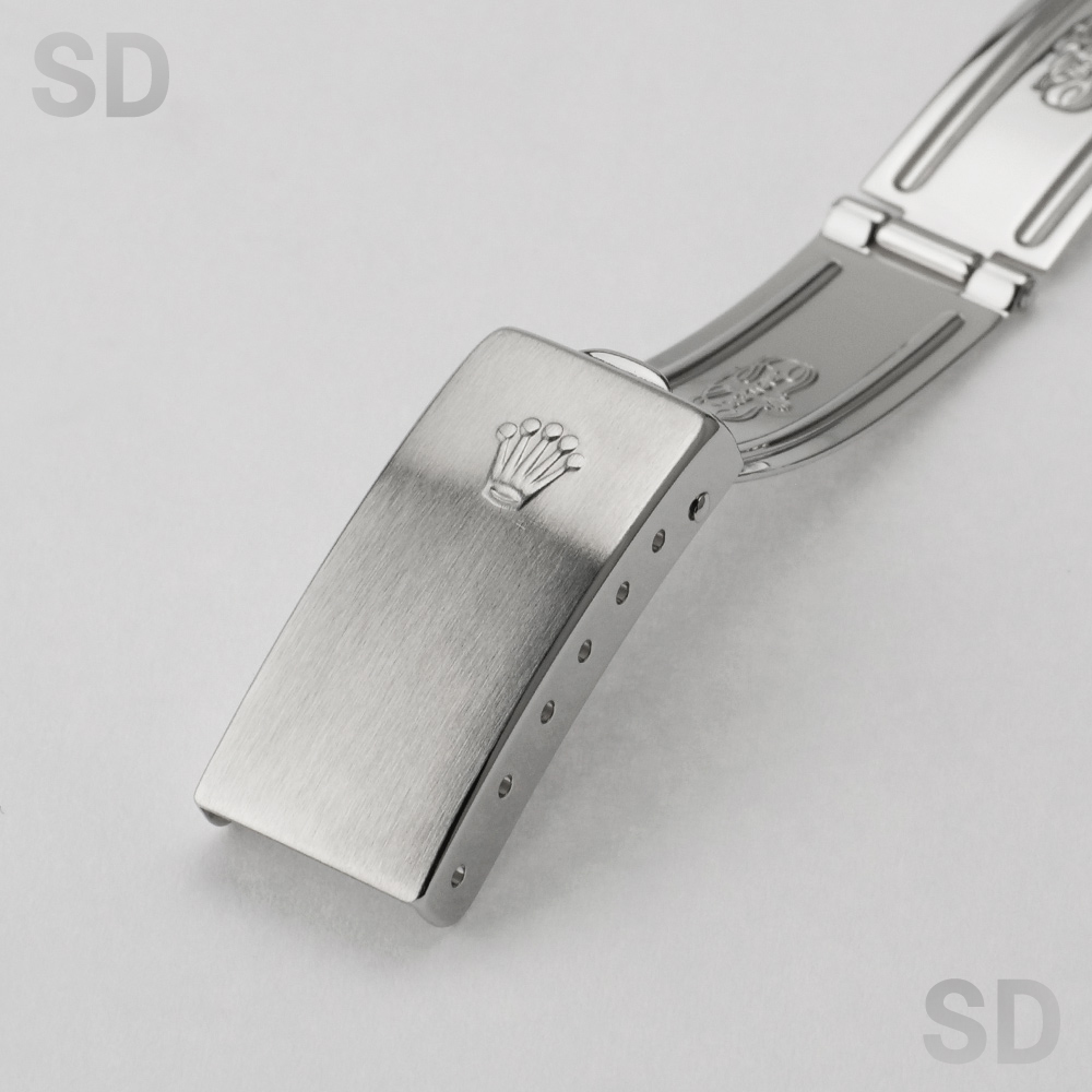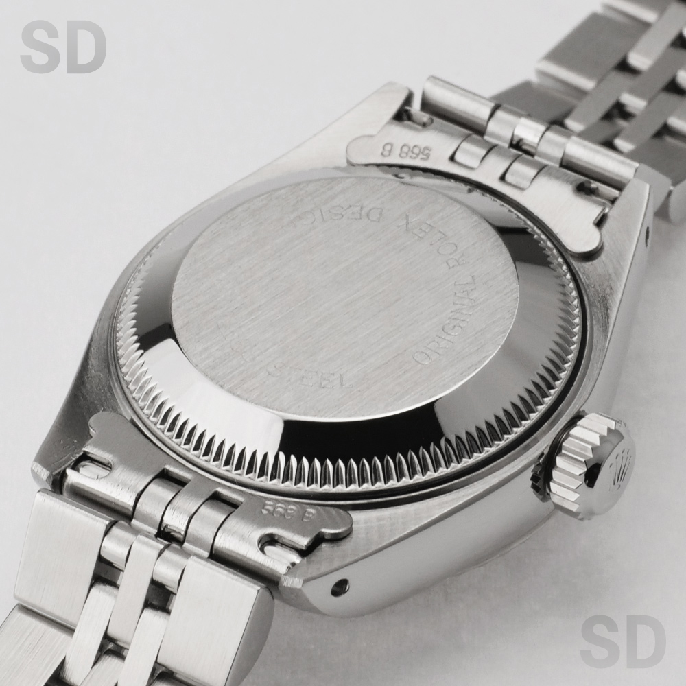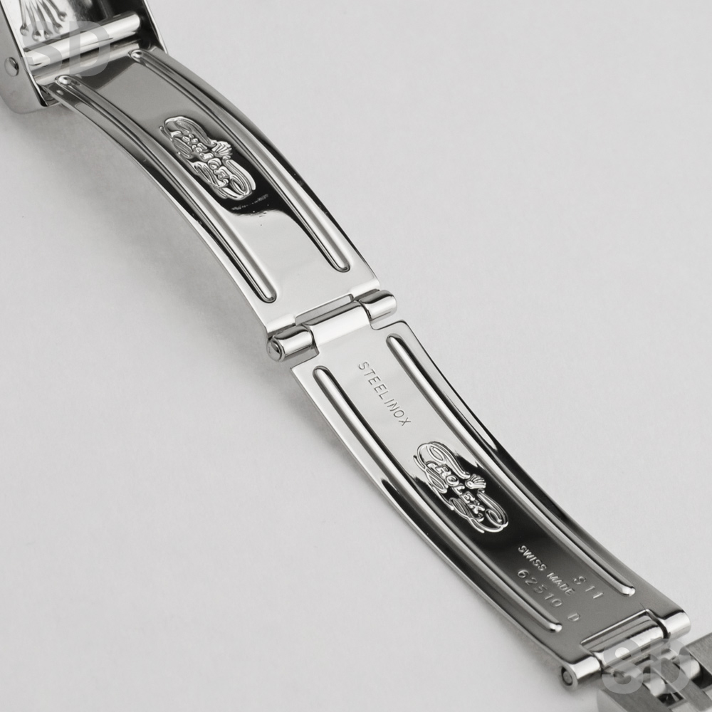その他の外装につきましては、専門の修理工房にて研磨処理を行っております。ラグ裏、裏蓋、バックル周辺に取り切れない小傷が残ってはおりますが、いずれも目立つものではなく、外観上の大きなダメージは確認されておりません。ブレスレットの伸びも少なめで、全体として非常に良好なコンディションを維持しております。
