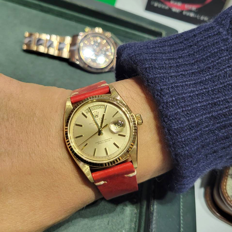 本個体は、ドミノピザの業績優秀者に対して贈呈される特別賞品として位置づけられており、同社加盟店の従業員を対象に実施されている「ロレックスチャレンジ」を達成した者にのみ与えられる、いわば“名誉と実績の象徴”とされる非売品モデルであり、米国ロレックスが製造した特別なコラボレーションピースでございます。このロレックスチャレンジは、4週連続で売上目標を達成することが条件とされ、その厳しい基準から入手難易度は非常に高く、結果として今日まで高いコレクション価値を形成しております。 また、この取り組みは1980年代後半より現代に至るまで継続して行われており、贈呈されるロレックスのデザインは年代によって異なるバリエーションが存在しております。
