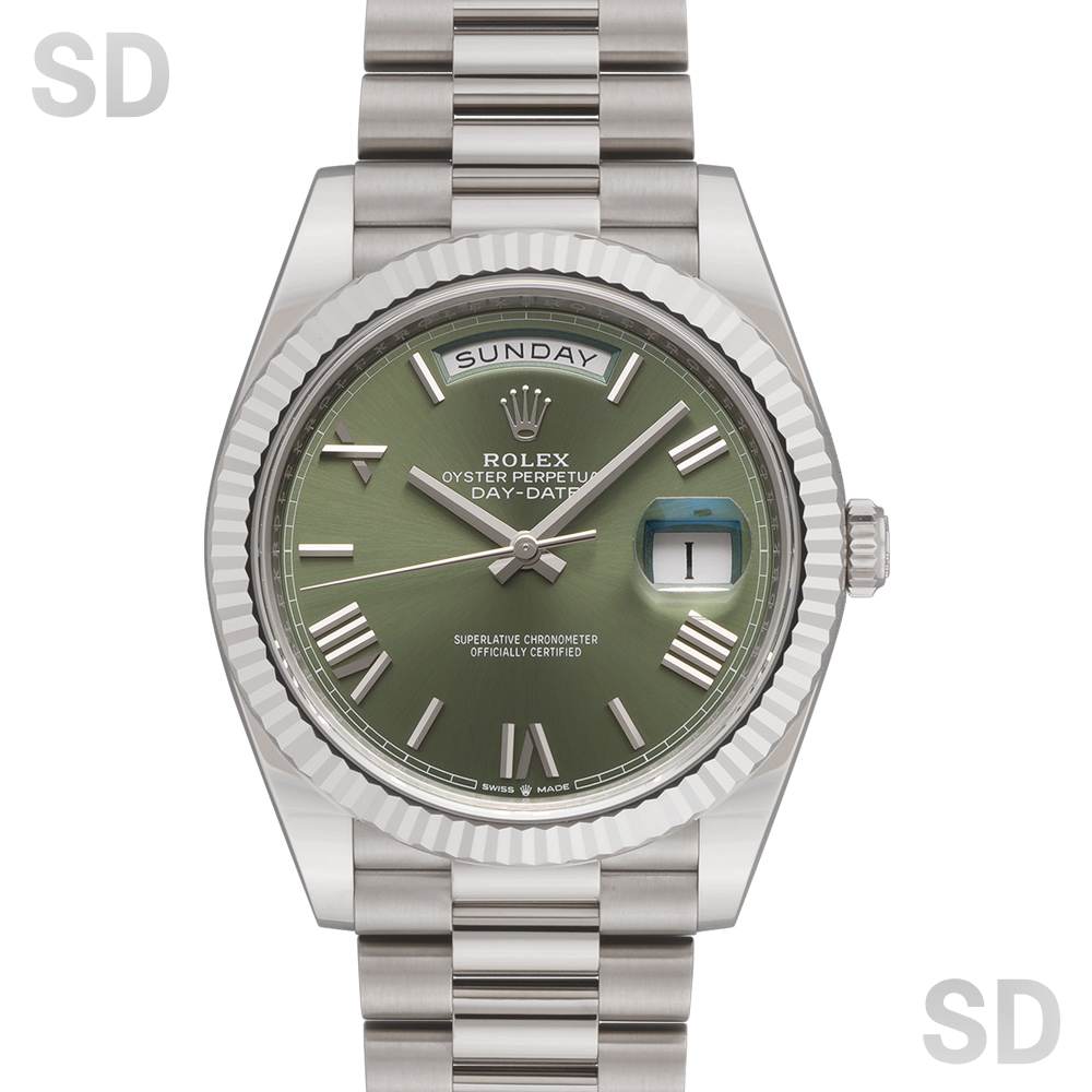 本モデルは、存在感のあるホワイトゴールド製フルーテッドベゼルとステンレススチールのコンビネーションが特徴で、文字盤には2021年から2024年のわずか3年間のみ製造されたミントグリーン・フルーテッドモチーフダイヤルを採用。レーザー彫刻による繊細な模様が光を受けて煌めき、装う者の腕元を華麗に彩る逸品です。