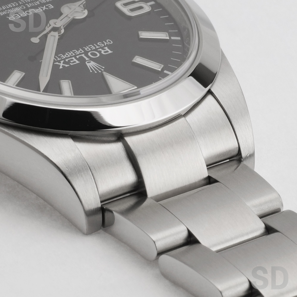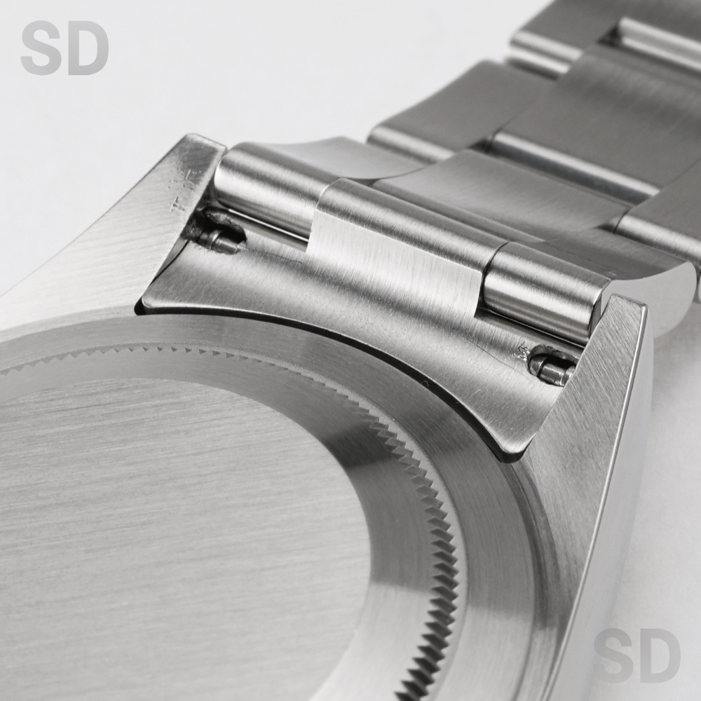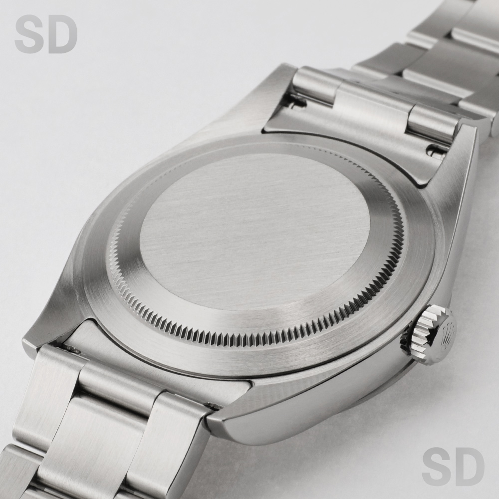 ロレックスが誇るスポーツモデルの中でも特に高い人気を誇る一本であり、シンプルかつ実用性に優れたデザインが多くの愛好家から支持を集めております。39mmケースを採用した同リファレンスは、視認性に優れたダイアルデザインと堅牢な造りを兼ね備え、ビジネスからカジュアルまで幅広いシーンでご使用いただける汎用性の高さが魅力でございます。加えて、こちらの個体は「3・6・9メタル」ダイアルに、「梨地タイプ」のクラスプが装着された前期型となっております。