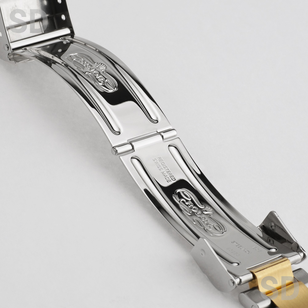 ベゼルの外周(メタル部分)やブレスレット表面には、ゴールド特有の擦り傷が薄っすらと残りますが、特筆すべき大きな傷もなく、コンディションは良好の美品中古品です。