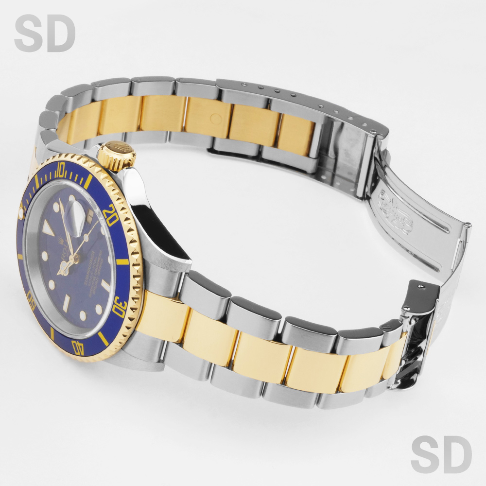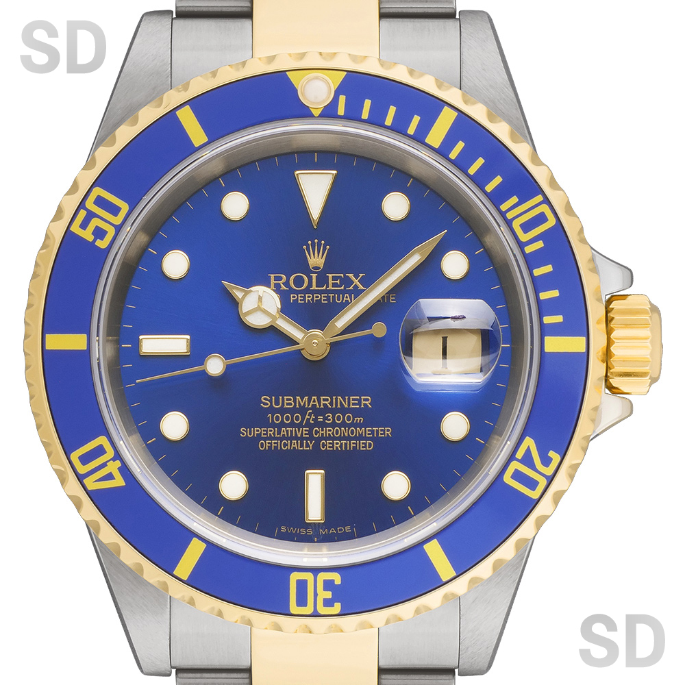1988年頃より2009年まで製造されていた、サブマリーナーシリーズの16613。サブマリーナーのコンビモデルといえば青と黒のカラーリングによって「青サブ」「黒サブ」と呼ばれ愛されている定番モデル。その中でも青サブは海を連想させるカラーであり現在でも圧倒的な人気を誇ります。ダイバーズウォッチとして300m防水の実用性も兼ね揃えており、比較的ラフにお使い頂ける1本です。
