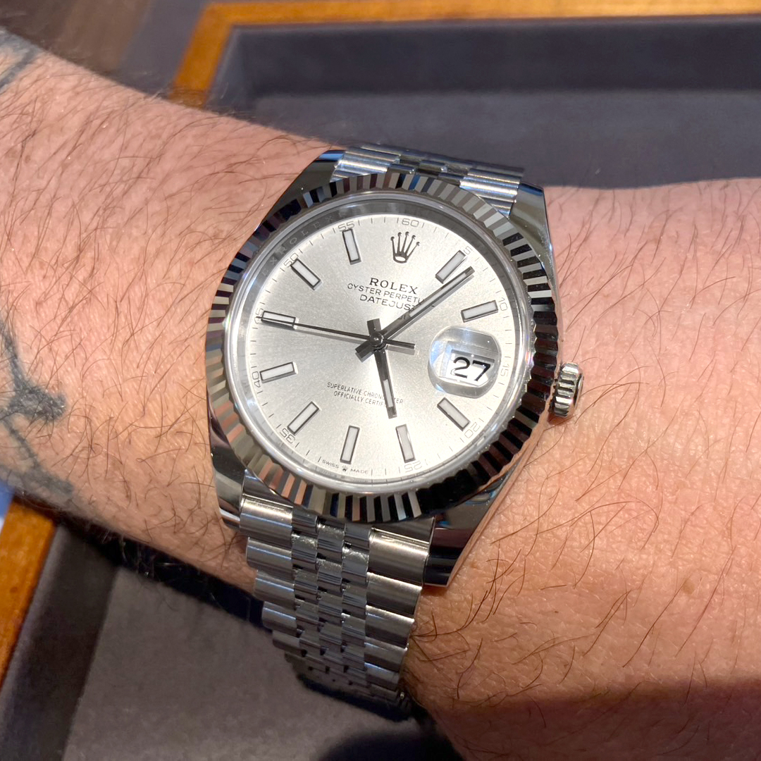 状態です。外装につきましては、日本ロレックスにてポリッシュ(研磨)が施されており、全体的に大変美しい状態を維持しております。通常使用に伴うレベルの僅かな擦り傷が一部に残る程度で、目立つ打痕や深いキズなど、特筆すべきダメージは確認されません。総合的に見ても極めてコンディションの整った個体でございます。
