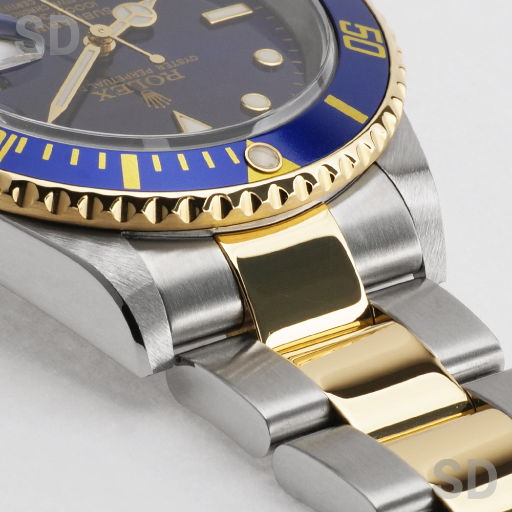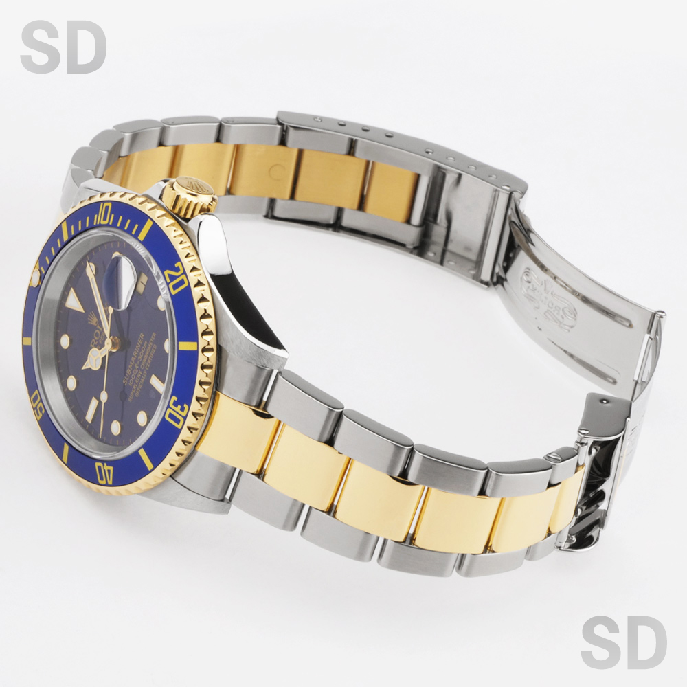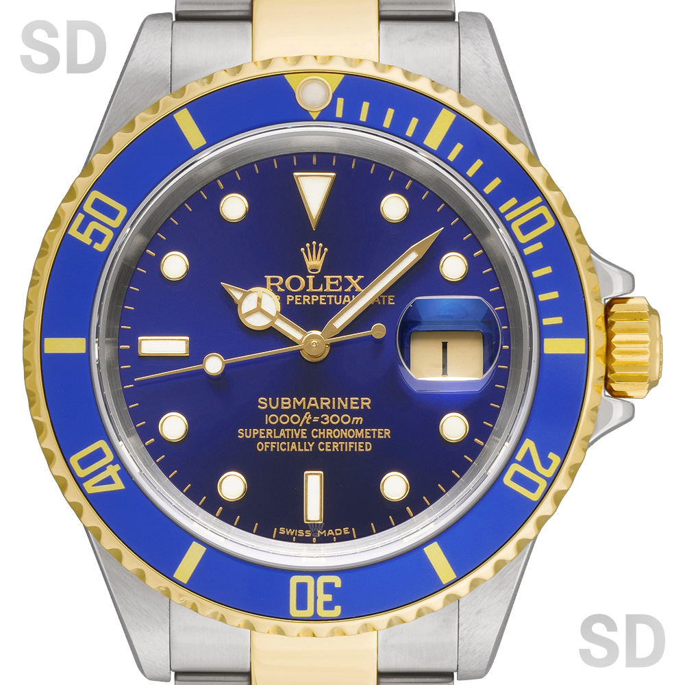 1988年頃より2009年まで製造されていた、サブマリーナーシリーズの16613。サブマリーナーのコンビモデルといえば青と黒のカラーリングによって「青サブ」「黒サブ」と呼ばれ愛されている定番モデル。その中でも青サブは海を連想させるカラーであり現在でも圧倒的な人気を誇ります。また、この世代の青サブは製造年式や製造工場によって文字盤の個体差があり、今回こちらにセットされるブルー文字盤は、反射が強く奥深いメタリックブルーのようなとても美しい色彩です。ダイバーズウォッチとして300m防水の実用性も兼ね揃えており、比較的ラフにお使い頂ける1本です。