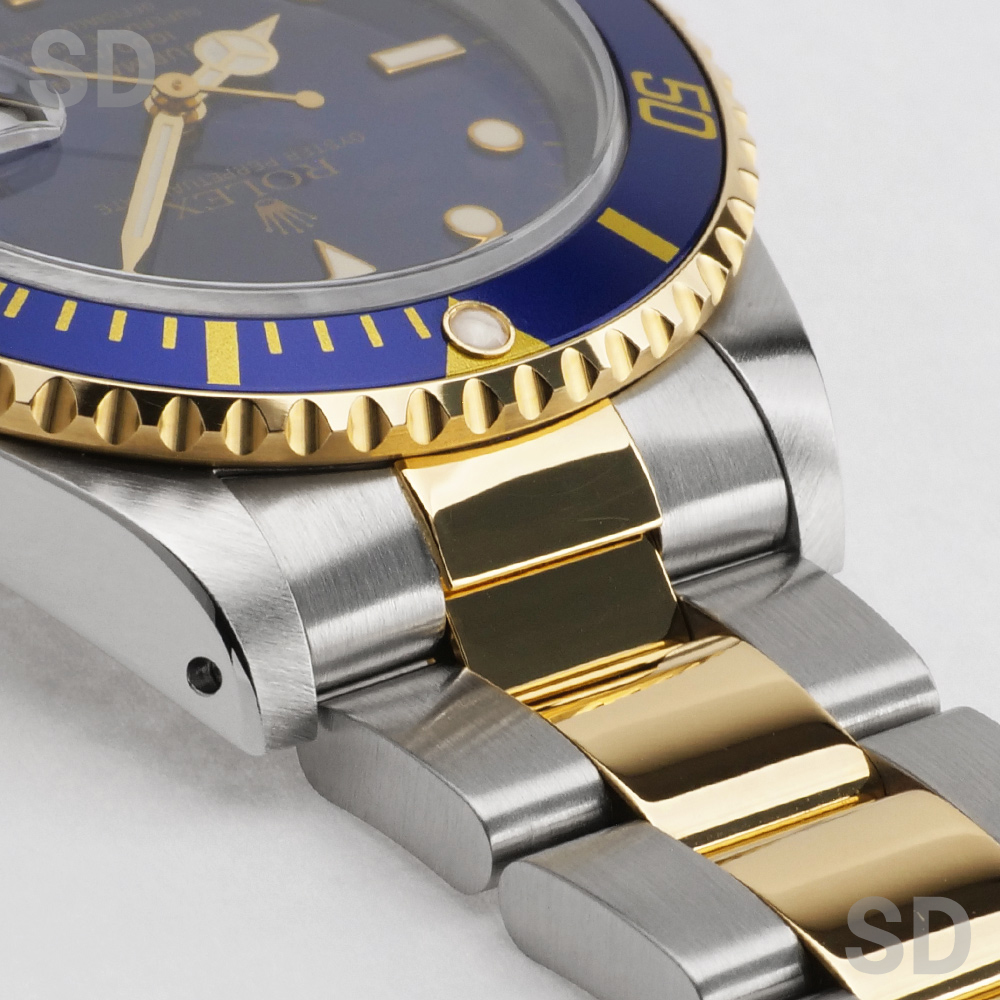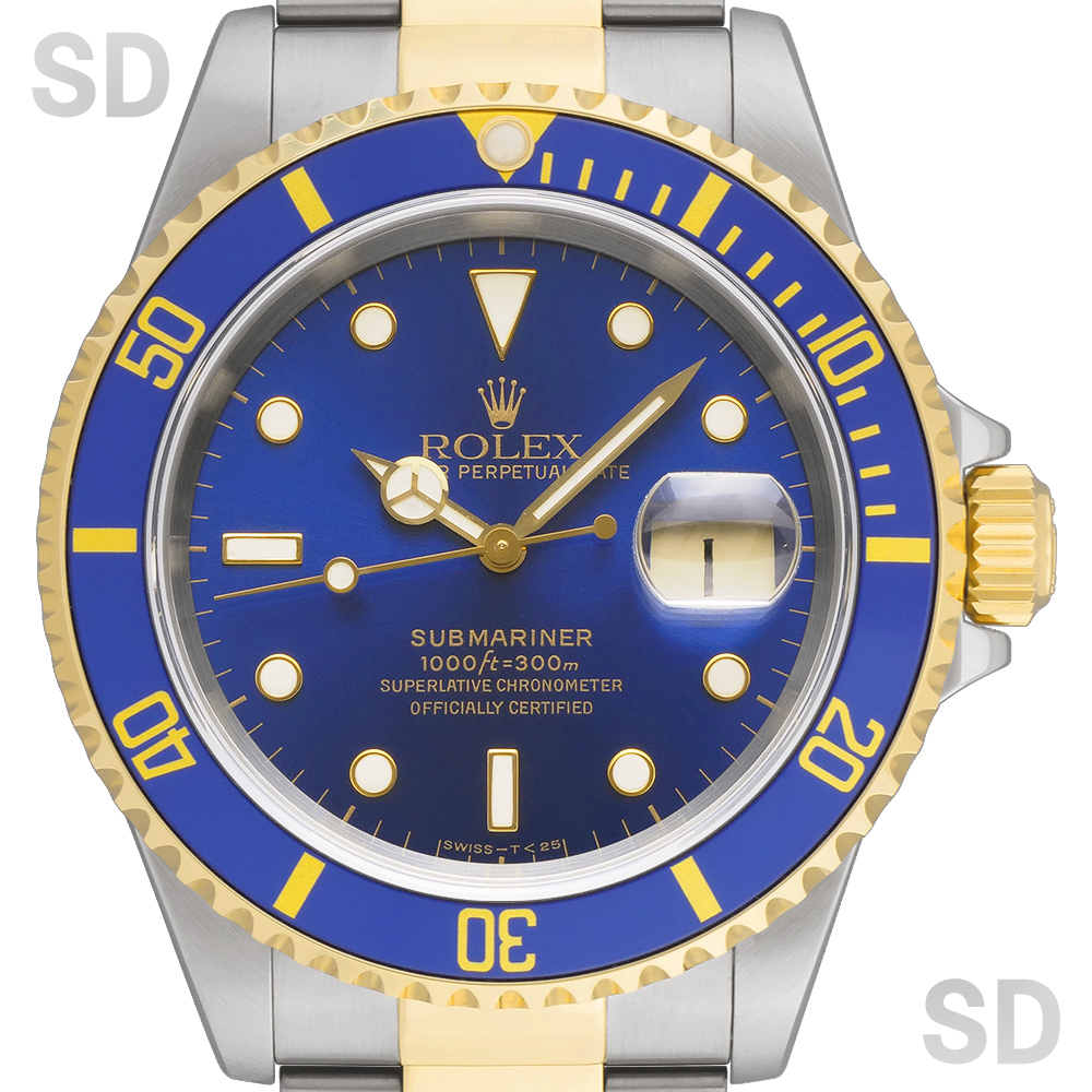 1988年頃より2009年まで製造されていた、サブマリーナーシリーズの16613。サブマリーナーのコンビモデルといえば青と黒のカラーリングによって「青サブ」「黒サブ」と呼ばれ愛されている定番モデル。その中でも青サブは海を連想させるカラーであり現在でも圧倒的な人気を誇ります。ダイバーズウォッチとして300m防水の実用性も兼ね揃えており、比較的ラフにお使い頂ける1本です。