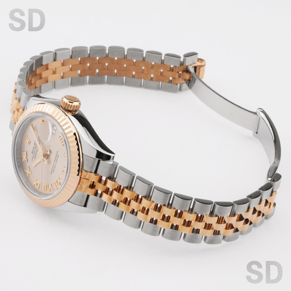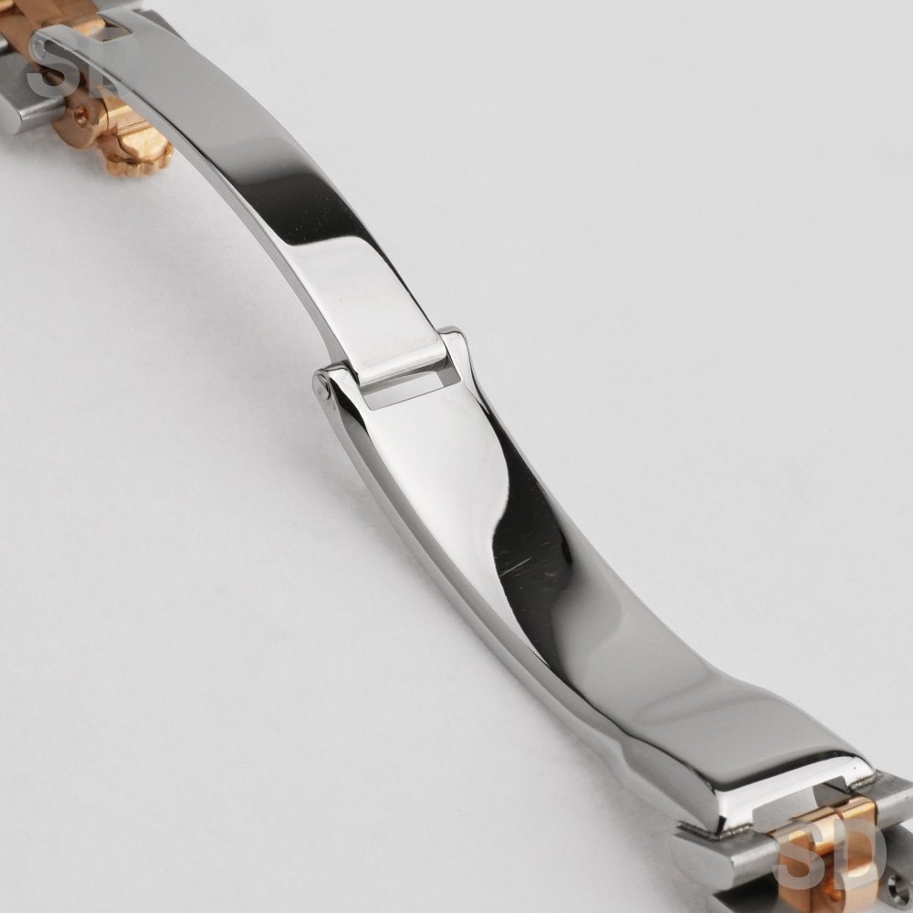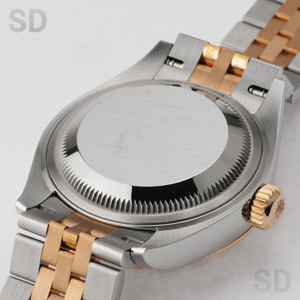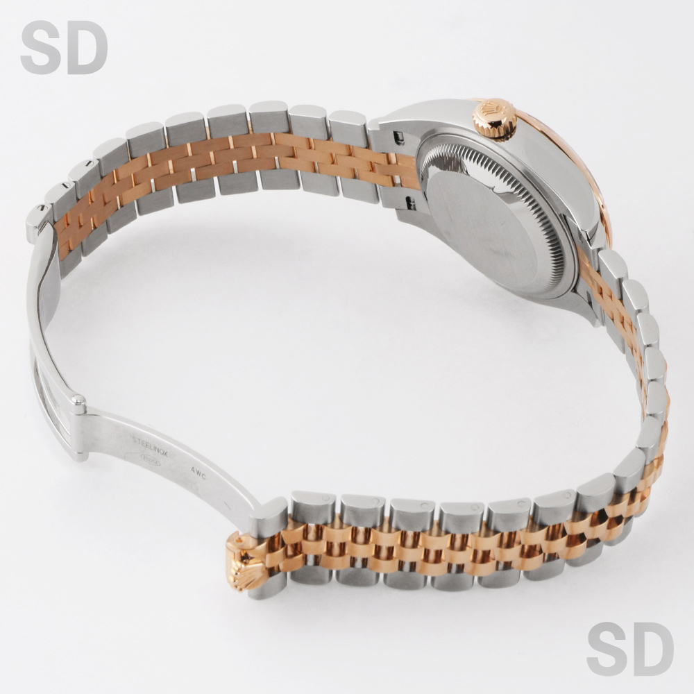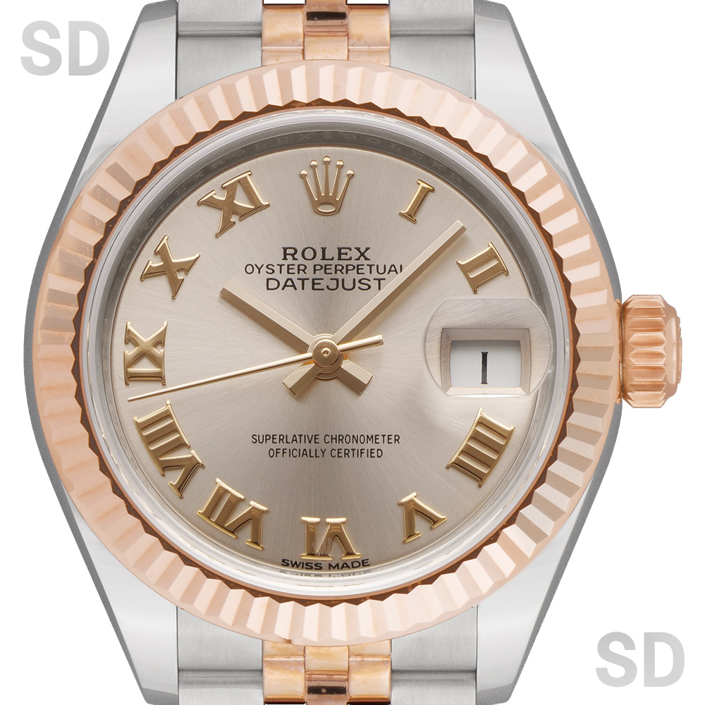 本モデルはステンレススチールとエバーローズゴールドを組み合わせたロレゾール(コンビ)仕様で、ブランドを象徴するフルーテッドベゼルに、しなやかな装着感とエレガントなデザインが特徴のジュビリーブレスレットが装着。文字盤には繊細な輝きを放つサンダストローマを採用しております。
