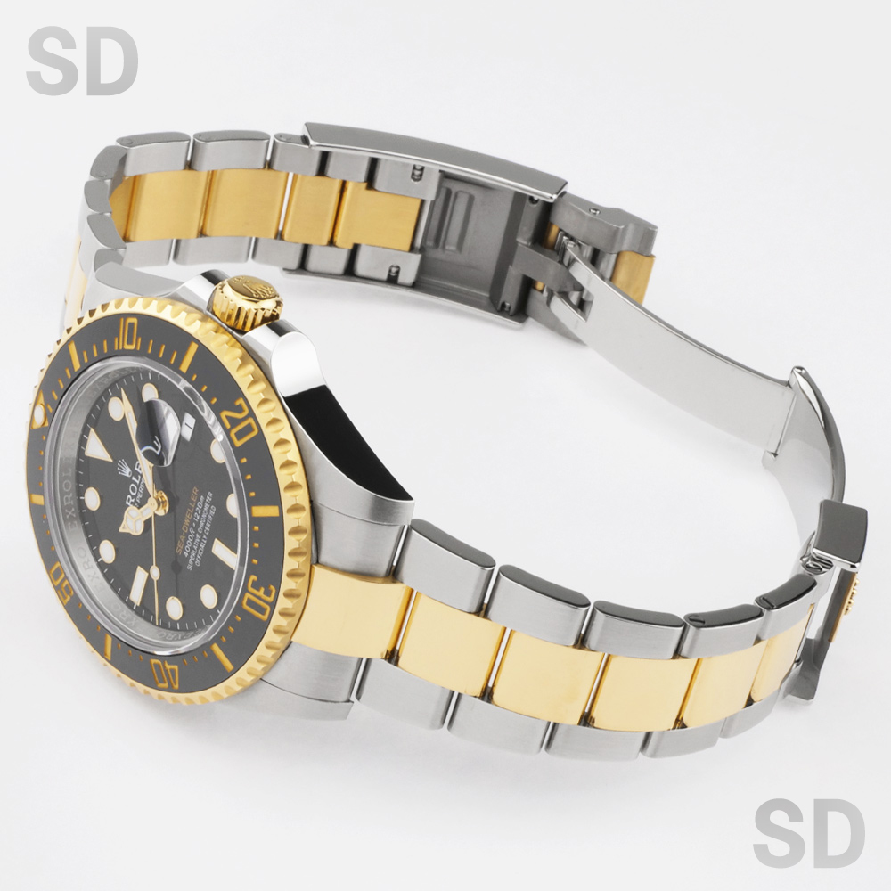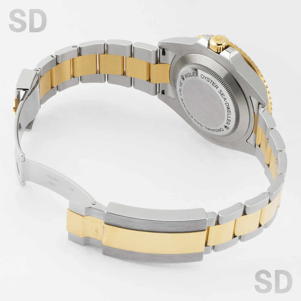 本モデルは、堅牢性と高級感を兼ね備えた、プロフェッショナルダイバーズウォッチ「シードゥエラー」のシリーズ初のロレゾール(コンビ)仕様となっております。大型の43mmケースに、18Kイエローゴールドのコンビネーションが、タフな印象の中にも上質な輝きを添え、実用性とラグジュアリーを高次元で融合させた一本です。