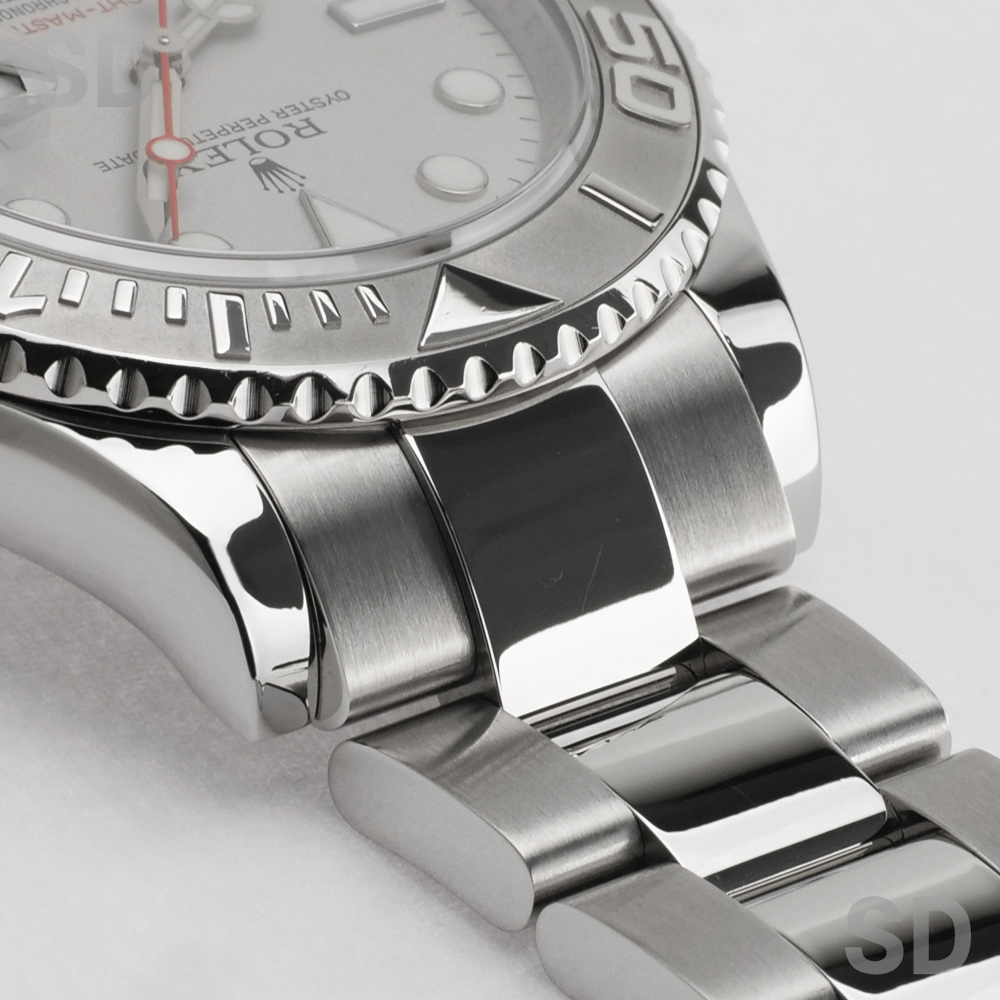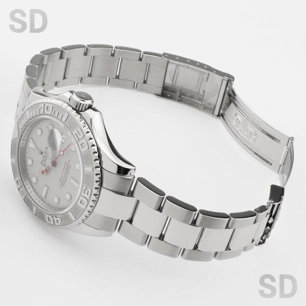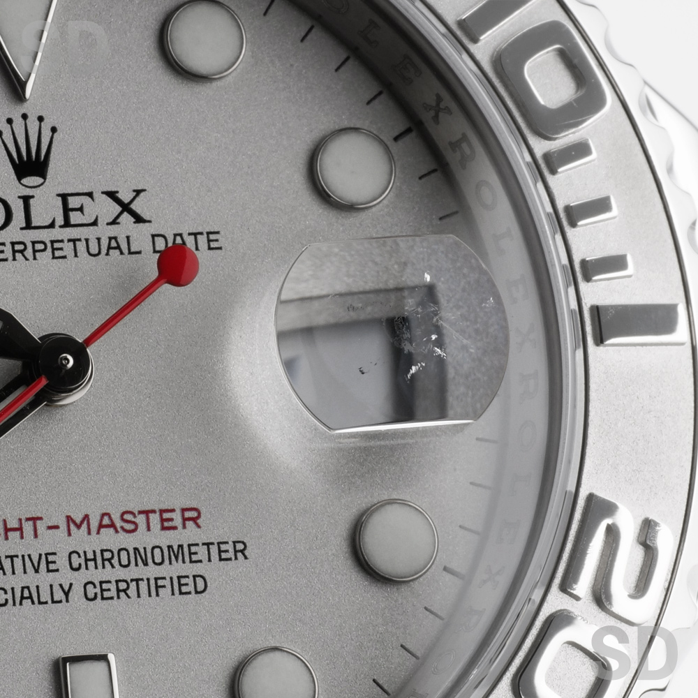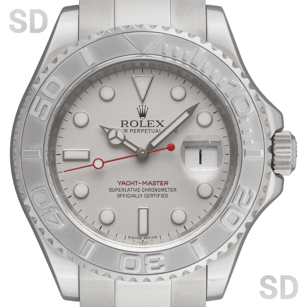 こちらの個体は、1999年から2012年まで製造されていたヨットマスターロレジウムのファーストモデルです。ステンレススチールとプラチナを組み合わせたロレジウムと呼ばれる仕様で、ダイアルはシルバーグレーカラー(メーカー公式の文字盤名はプラチナ)が装着。ヨットマスターならではのスポーティーさと、上品で落ち着いた高級感を兼ね備えた仕上がりが魅力です。
