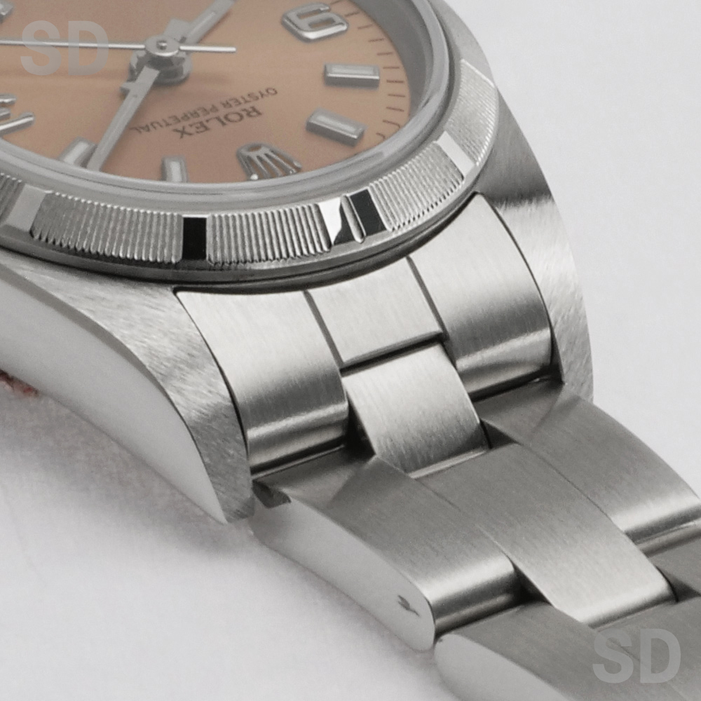 控えめで小振りな24mmサイズの日付のないシンプルな3針自動巻き腕時計。視認性もよく飽きのこないデザインとして現在でも人気が高いモデルです。また、こちらのモデルはエンジンターンドベゼルを装備しており、ドレスウォッチとはいえスポーティなデザインとなっています。ケースの厚みもない非常に軽いお時計で、普段使いにも邪魔にならずどんなシチュエーションでも末永くお使い頂けるモデルです。