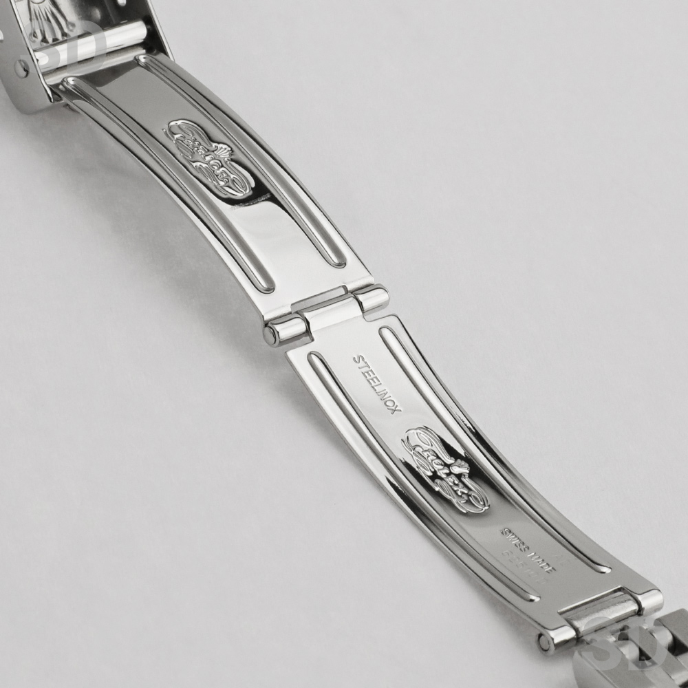 その他の外装部分は、提携の修理工房にて研磨を実施しており、取りきれない小傷がリューズ周辺に残る程度で、全体として良好な状態を保っております。ブレスレットには年代特有の伸びが少し感じられるものの、装着や使用に支障をきたすものではなく、裏蓋のシールも残っていることから、コンディションは総じて大変良好です。