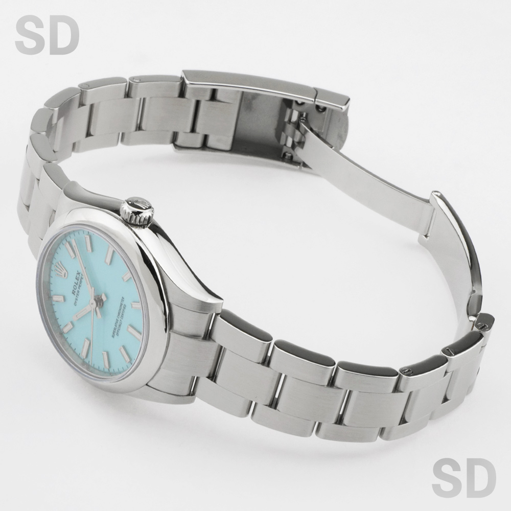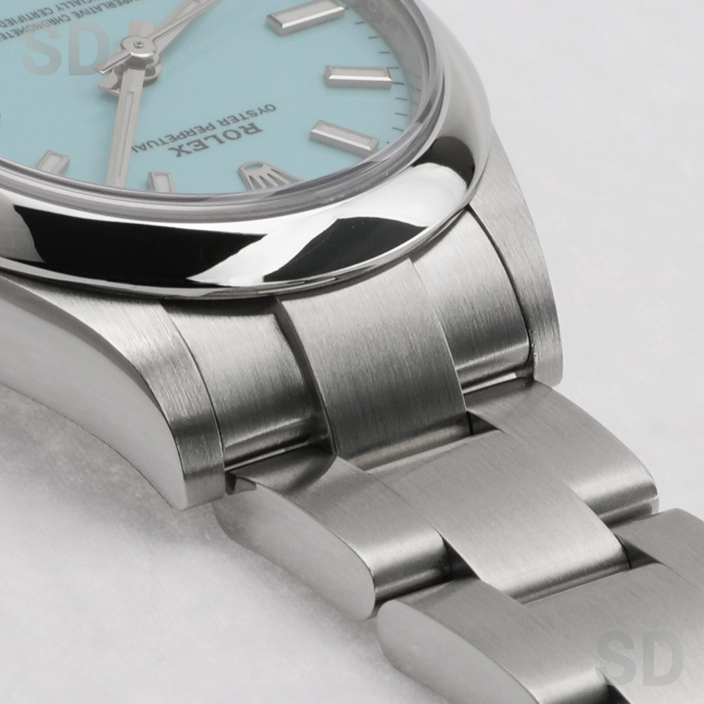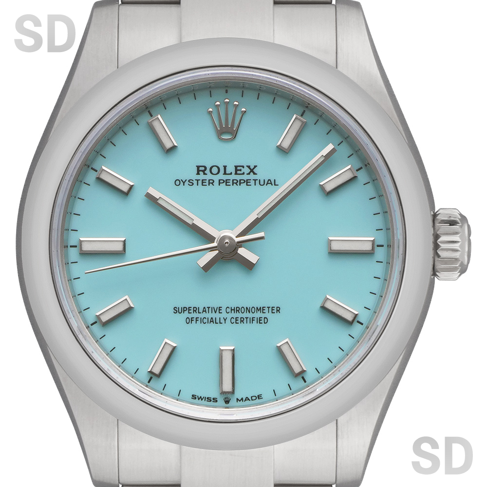 2020年にリニューアルしたオイスターパーペチュアルコレクション。現在のパーペチュアルコレクションのサイズ展開の中では2番目に小さなサイズですが、女性でも少し大きめのサイズ感を希望される方にオススメのモデル。現行パーペチュアルはビビットカラーの文字盤を採用し人気となったコレクションですが、その中でもこちらのターコイズブルーは一番人気のカラーであり、現在でもお探しの方は多いのではないでしょうか。シンプルな3針時計とはいえとてもフェミニンで可愛らしい1本。最新鋭Cal.2232搭載でパワーリザーブは約55時間となり、実用性にも特化したモデルです。