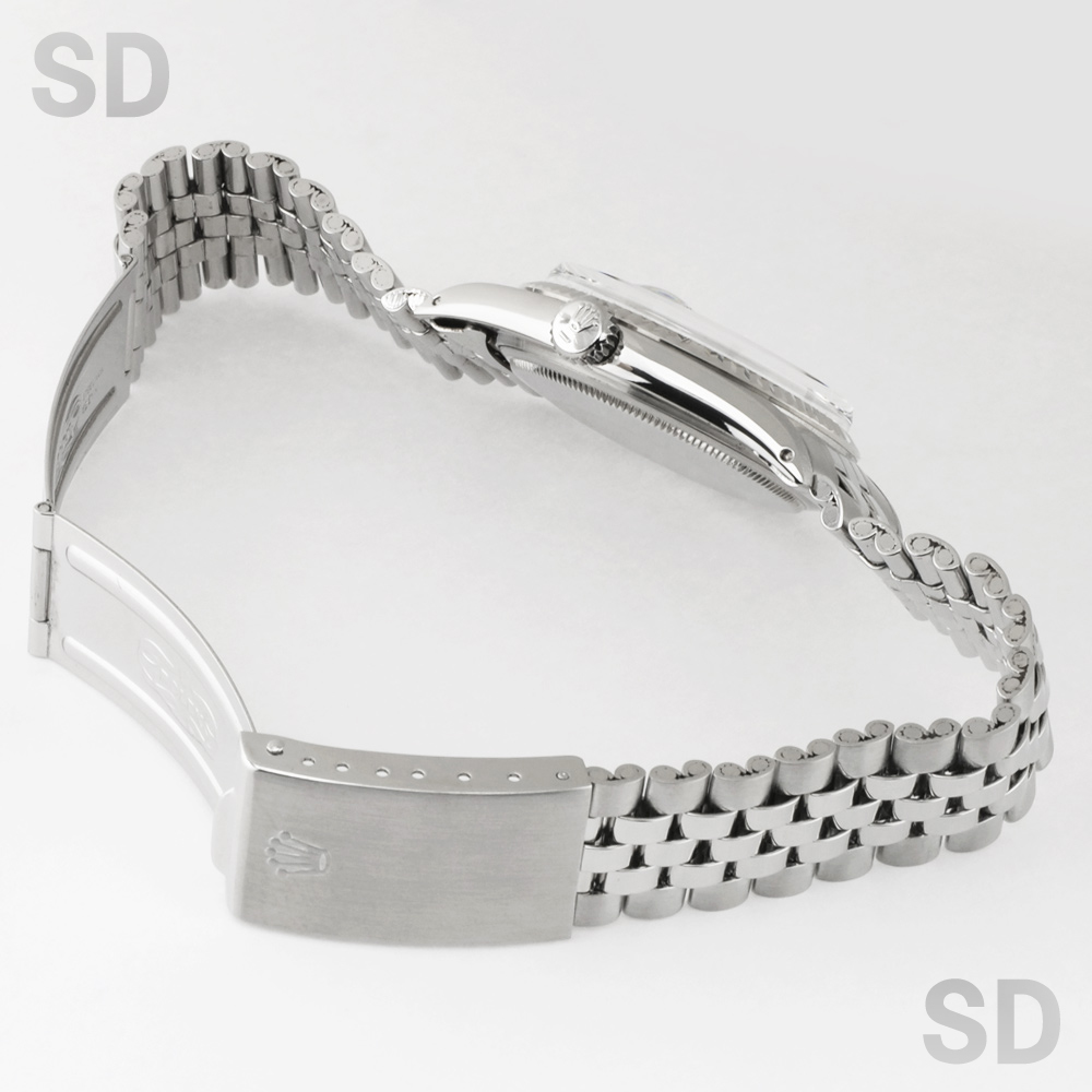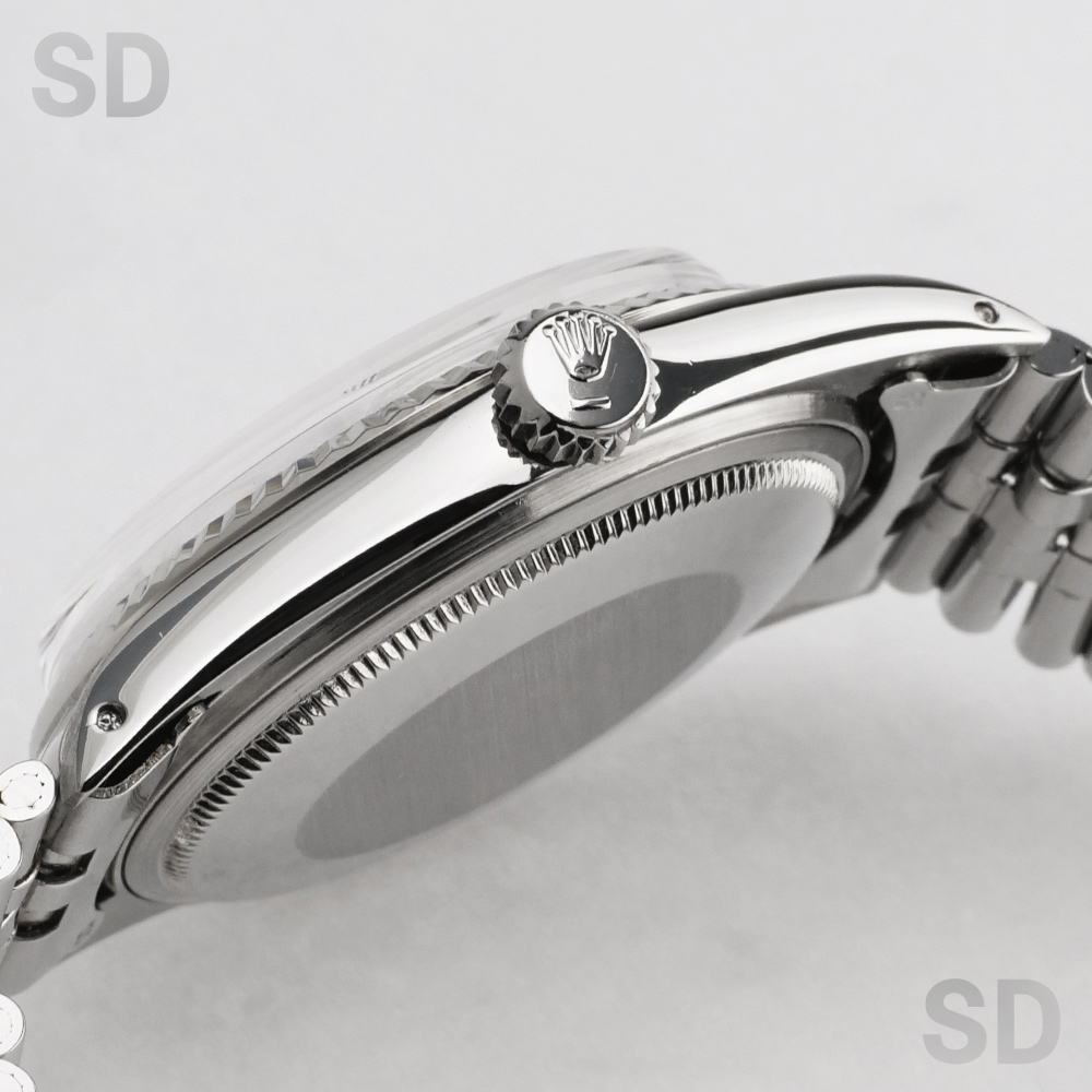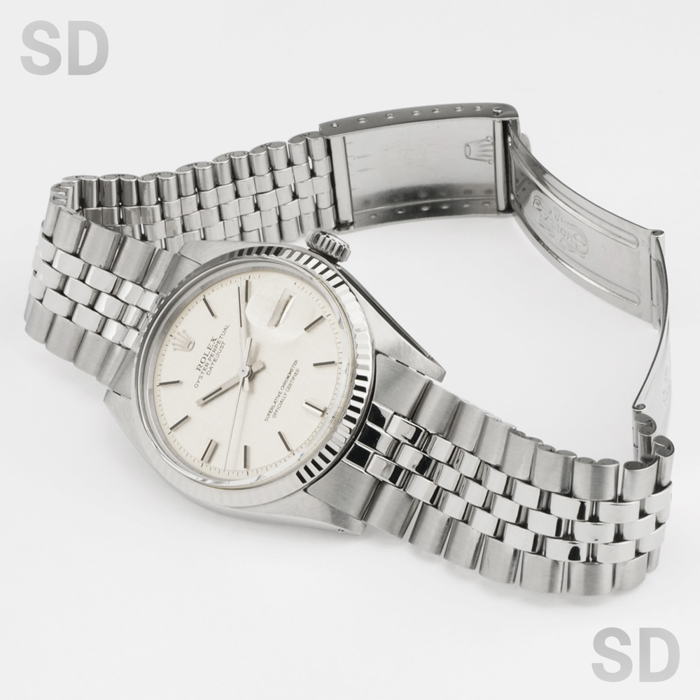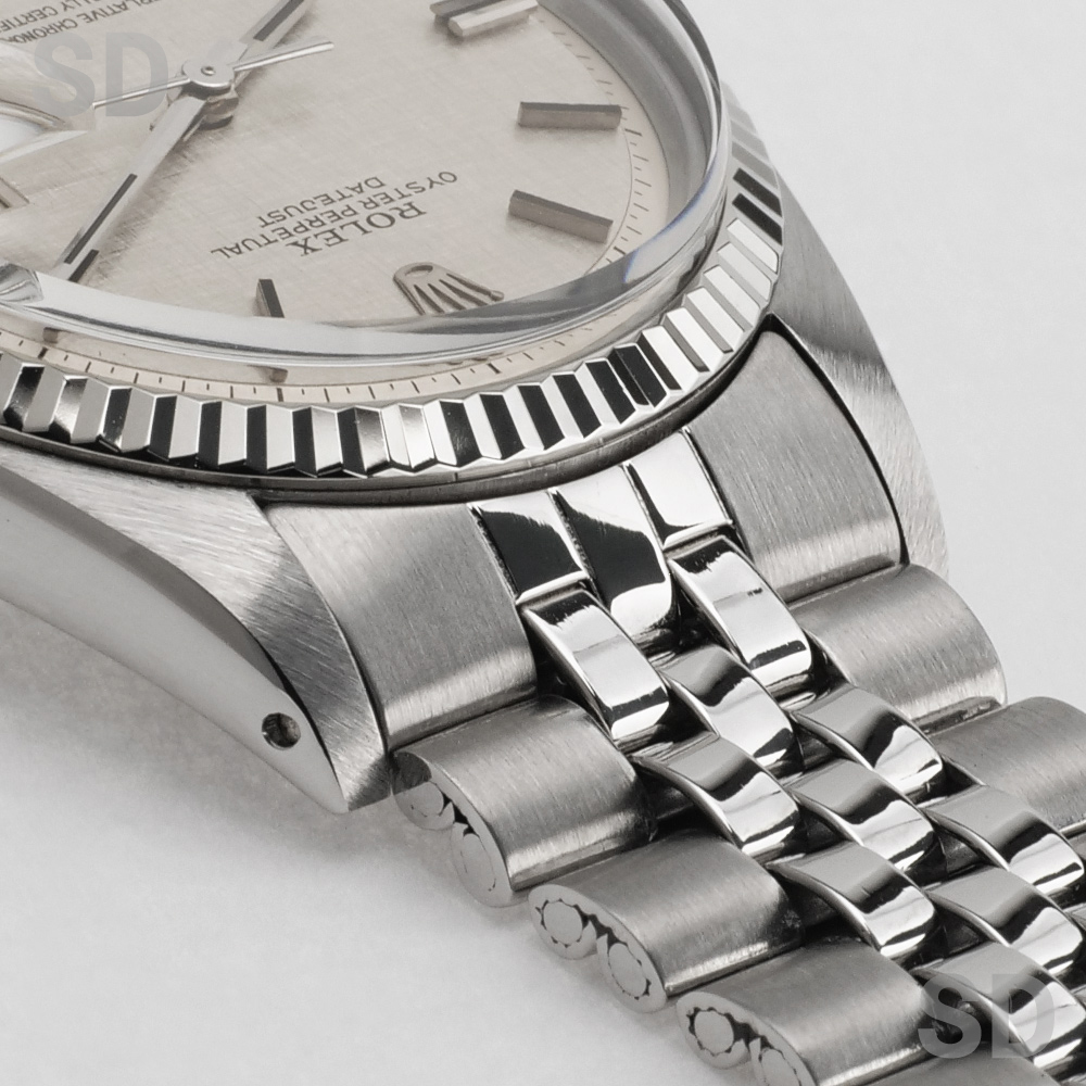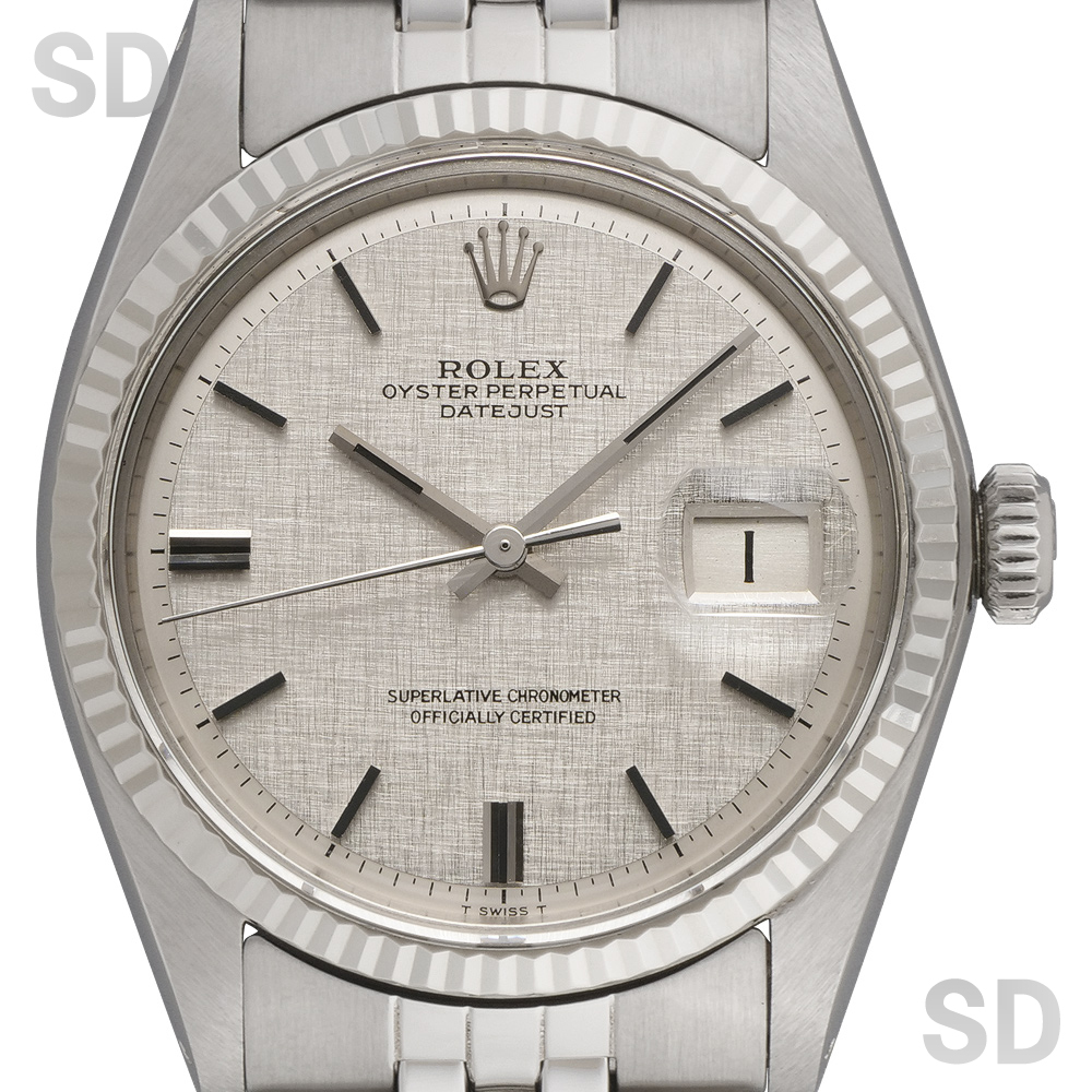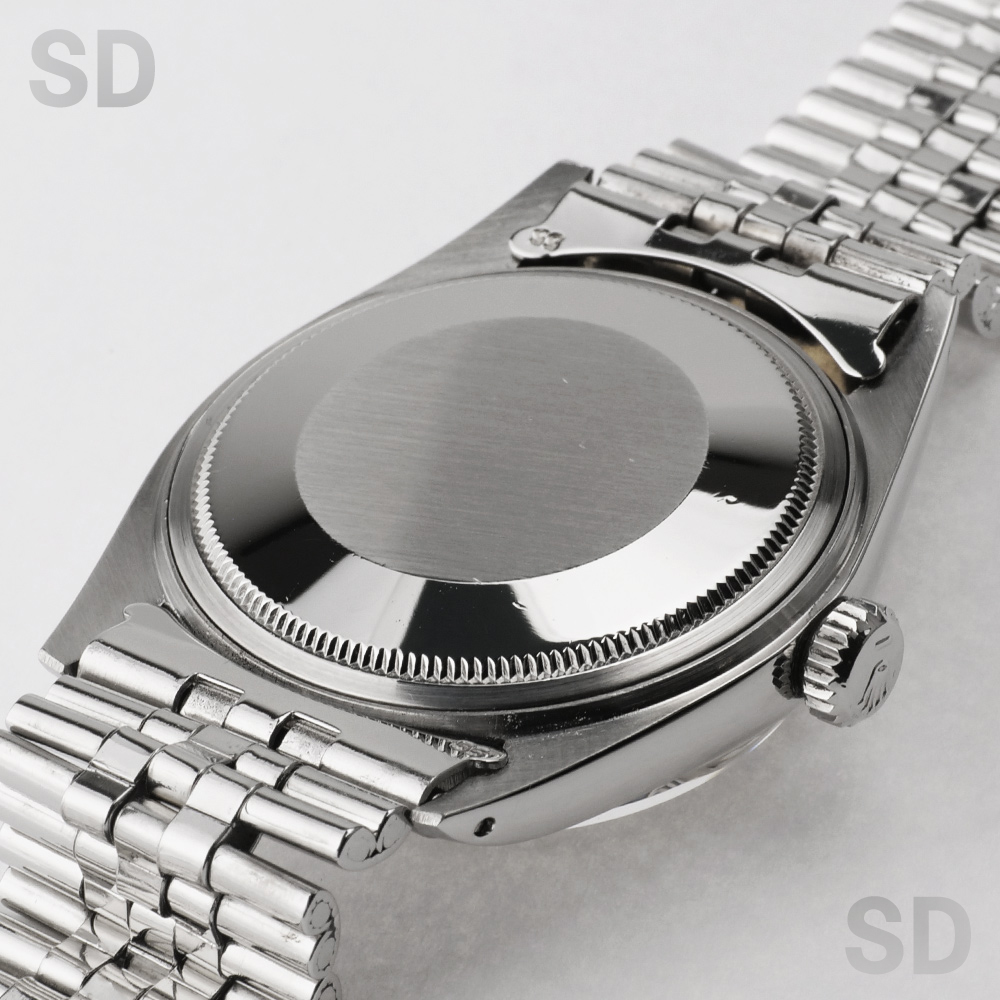 文字盤の外周が段落ちしているのが特徴の1960年代〜70年代を代表するヴィンテージデイトジャストシリーズ。こちらのモザイク文字盤は、海外のヴィンテージマニアから「リネン(亜麻布)ダイヤル」とも呼ばれており、不規則に縦横と線が施されていることでそのザラザラとした模様が、”まるで麻袋のようだ”といわれるようになりました。とても渋くよりヴィンテージ感が味わえるとして人気の文字盤。ビジネススタイルでもカジュアルスタイルでも合わせやすく、まだまだ現役で活躍出来るモデルです。