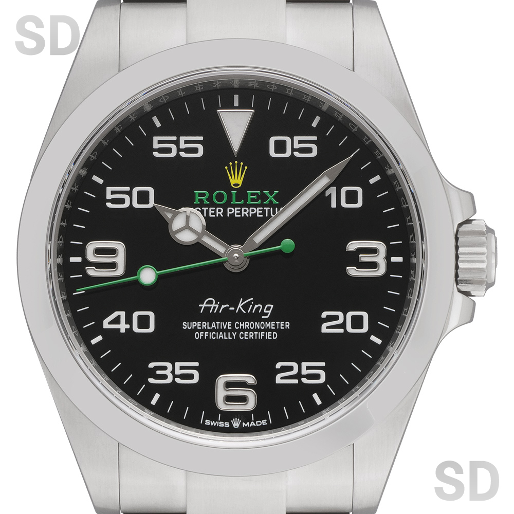 エアキングは航空界との深い結びつきを背景に誕生し、その象徴的な存在感で多くの時計愛好家を魅了してまいりました。先代モデルと比べ、外装は直線的なラグとリューズガードを備え、堅牢かつ洗練された印象へと刷新されました。ダイアルは3・6・9に夜光塗料を採用し、「5」を「05」と改めることで視認性とバランスが向上しております。内部機構も精度と安定性が強化され、より信頼性の高い仕上がりとなっております。伝統を継承しつつ進化を遂げた、新世代のプロフェッショナルモデルです。