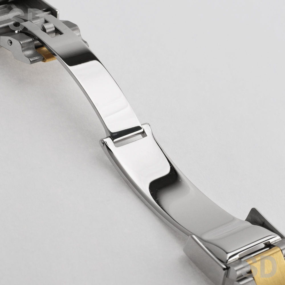 状態です。外装につきましては、ベゼル外周やクラスプ周辺にごく軽微な擦り傷が確認されますが、いずれも使用に伴う程度のものであり、傷取りを目的とした研磨を要するほどのものではございません。全体として外観を損なうような目立ったダメージは見受けられず、良好で清潔感のあるコンディションを維持しております。