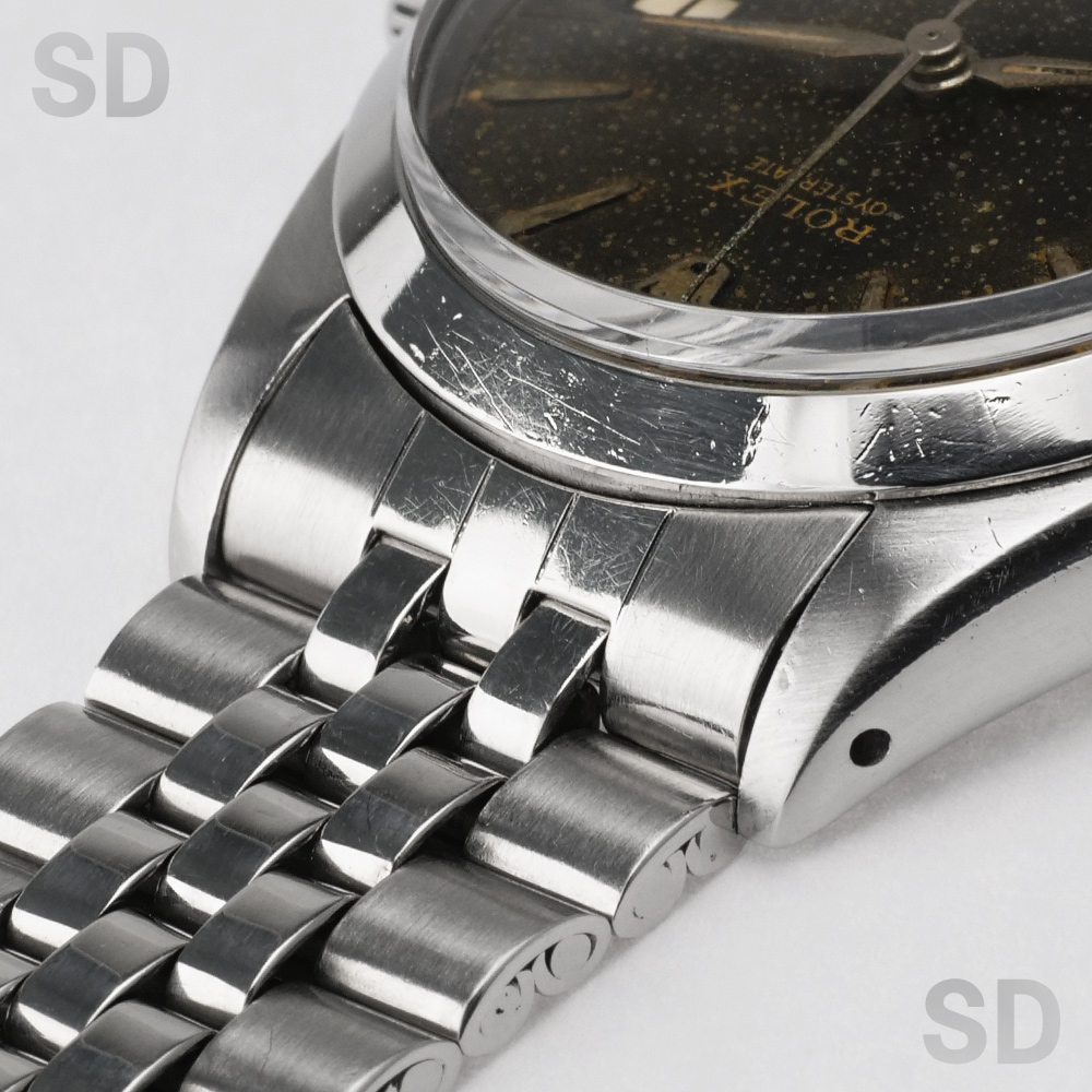 製造期間は長く1950年代後半〜1980年代後半まで沢山の方に愛されてきたモデル。日付を搭載しながらも最後まで手巻き仕様とされており、このモデルの生産終了をもってロレックスではオイスターケースの手巻き時計は終了となります。