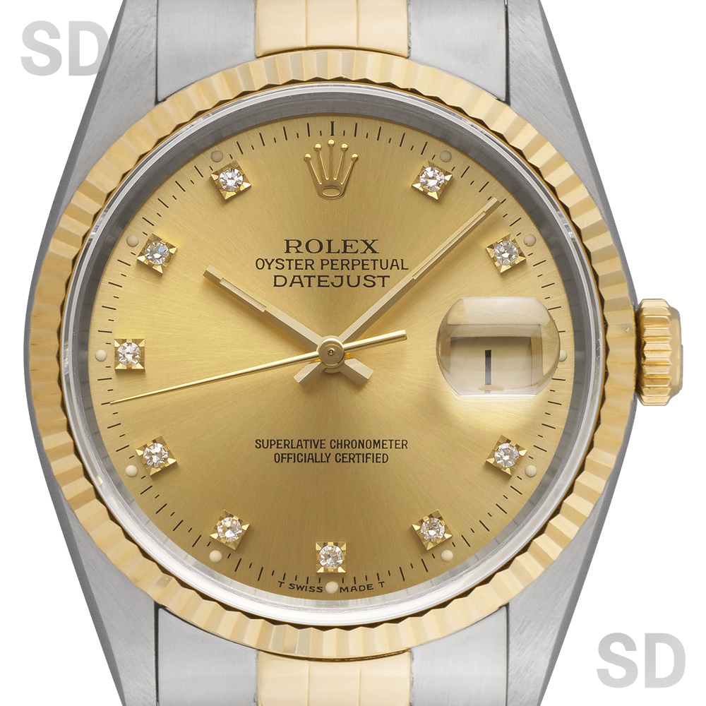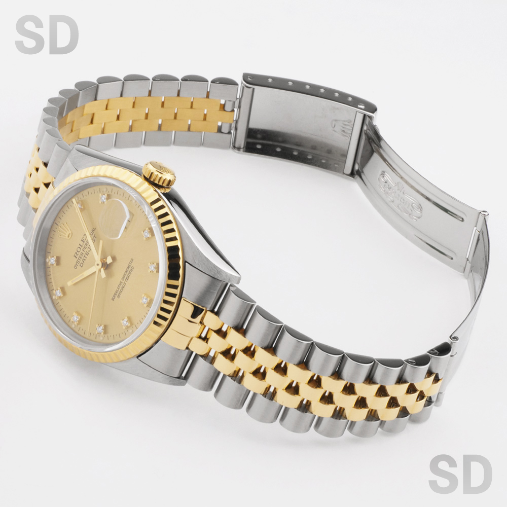 フルーテッドベゼルにジュビリーブレスレットをセットしたイエローゴールドコンビのシャンパン文字盤はデイトジャストの中でも代表格とされるデザイン。90年代に一世を風靡したこちらのモデルは、世代を超えて現在でも愛される定番モデルとなりました。