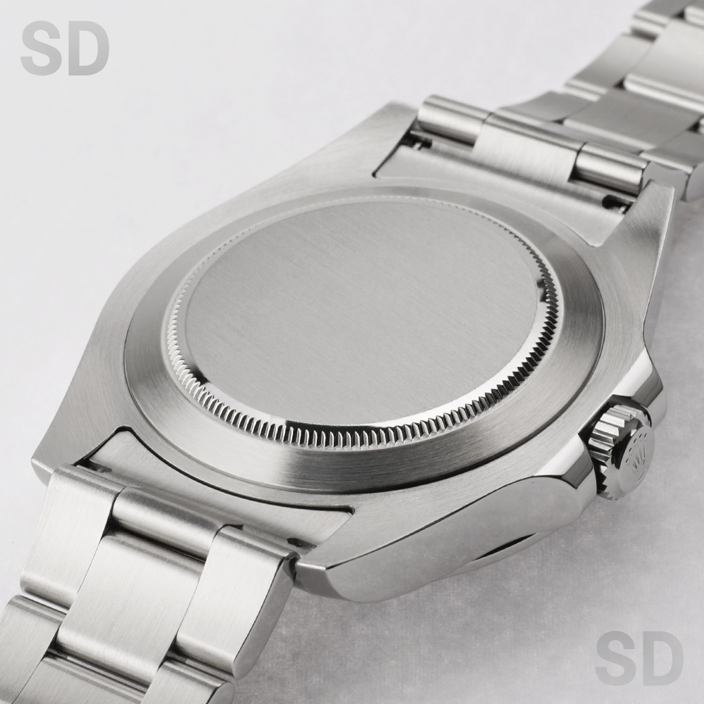 状態です。外装につきましては、提携の修理工房にて丁寧に研磨仕上げを施しております。そのため、研磨では完全に取り除くことができなかったごく軽微な擦り傷や小傷がラグ周辺にわずかに見受けられる程度であり、外観を著しく損なうような目立った打痕や深い傷など、特筆すべきダメージは確認されておりません。全体として大変綺麗なコンディションを維持している時計でございます。