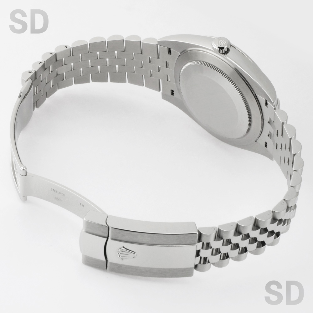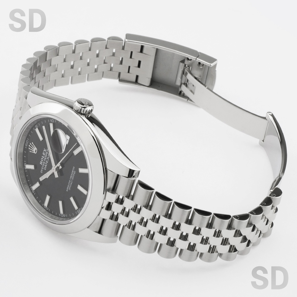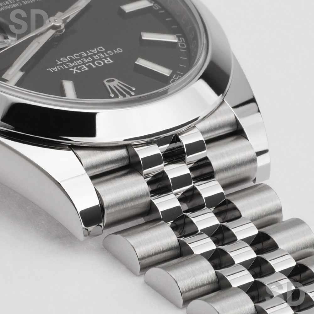 こちらのモデルは2017年に発表された現行モデル。36mmのデイトジャストとは単にサイズ違いとされていますが、36mmと異なりポリッシュされたスムースベゼルはフラットな形状をしております。生産が終了となったデイトジャスト2の後継機モデルとして製造されており、旧式デイトジャスト2と比べると若干ラグやケース形状の変更が加えられ長時間パワーリザーブの最新鋭Cal.3235を搭載。シンプルなスムースベゼルにジュビリーブレスレットを装備することでラグジュアリー感がUPし、程よい高級感でオンオフ問わず末永くご使用いただける1本。腕時計の定番であるブラック文字盤は、定番故に飽きのこないデザインです。