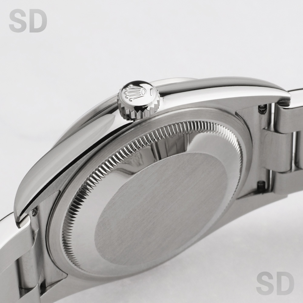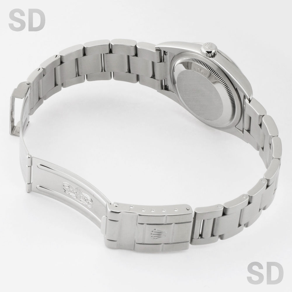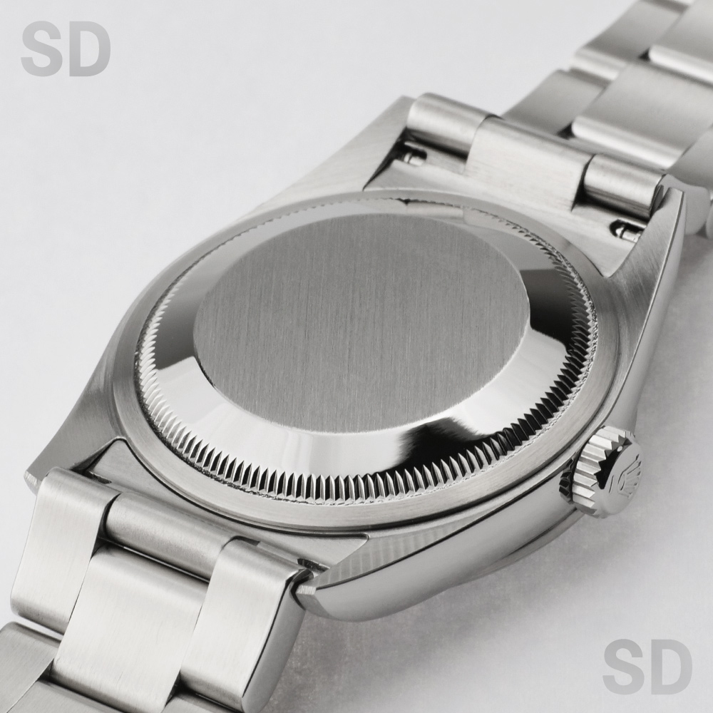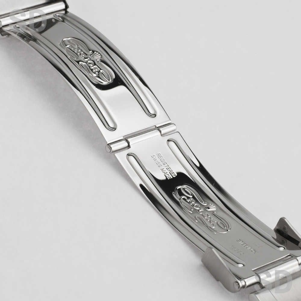 状態です。外装につきましては、提携の修理工房にて外装研磨を実施しております。そのため、研磨作業では完全に取りきれない程度のごく僅かな擦れや小傷が、ベゼルやラグ、フラッシュフィット裏側、バックル周辺などにわずかに確認されますが、いずれも軽微なものであり、外観を大きく損なうような特筆すべきダメージは見受けられません。全体として良好な状態を保っており、非常に綺麗なコンディションといえる個体です。