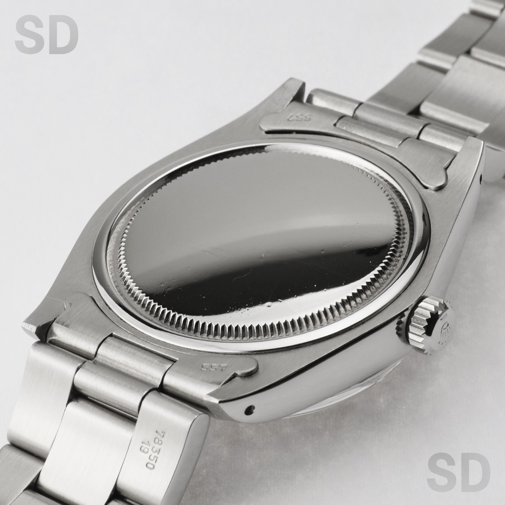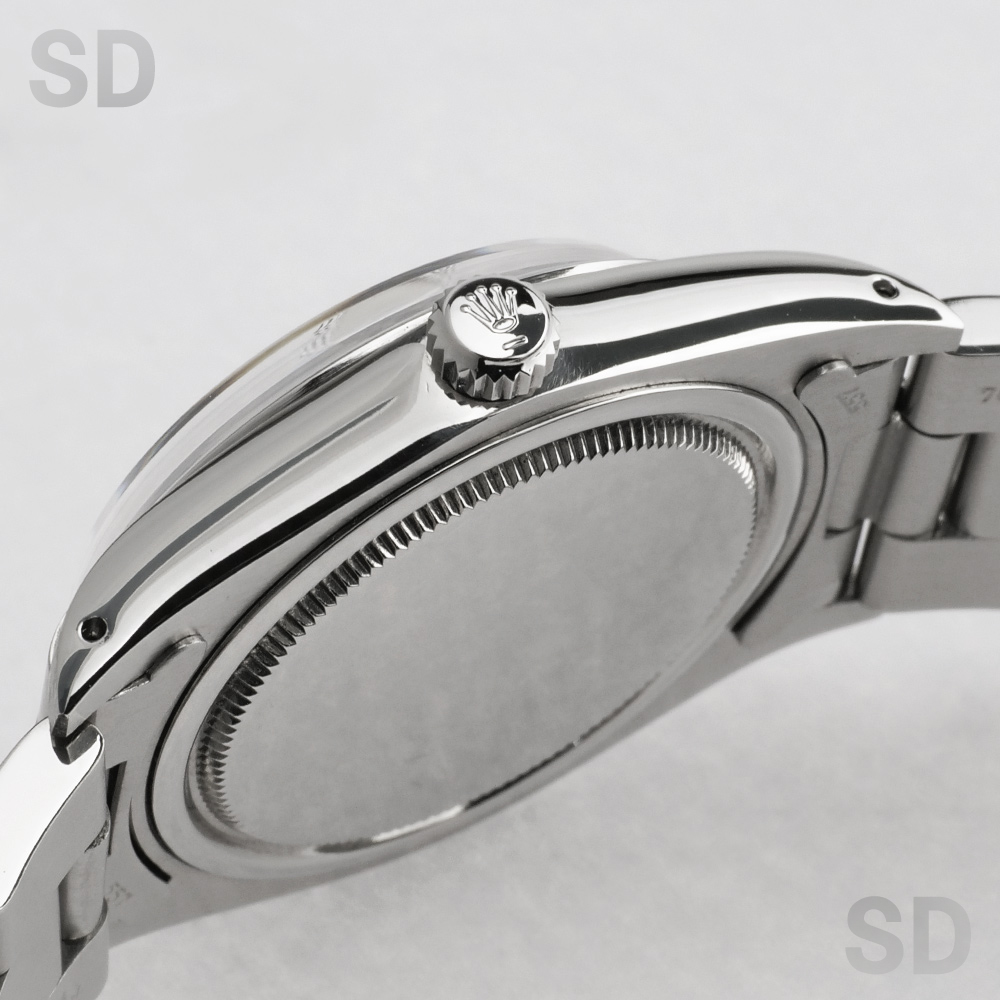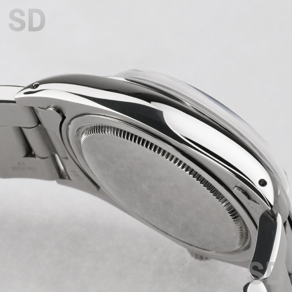 手巻き式ムーブメントが搭載された小振りなオイスターデイト。製造期間は長く1950年代後半〜1980年代後半まで沢山の方に愛されてきたモデルです。日付を搭載しながらも最後まで手巻き式仕様とされており、このモデルの生産終了をもってロレックスではオイスターケースの手巻き式腕時計は終了となります。毎日ゼンマイを巻き上げる事で愛着が湧いてくる1本。ヴィンテージ入門時計としてもオススメです。