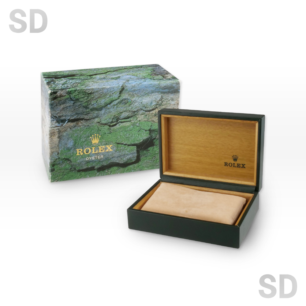 こちらの個体には1990年代半ば頃まで採用されていた文字盤がセットされています。文字盤表面にはROLEXの文字が薄っすらとプリントされており、光の角度によって模様がはっきりと浮き出るさまはとても美しく、時間を確認するのがとても楽しく感じられるでしょう。あえて旧型を選ばれる方も多いほど当店一番人気のモデルです。