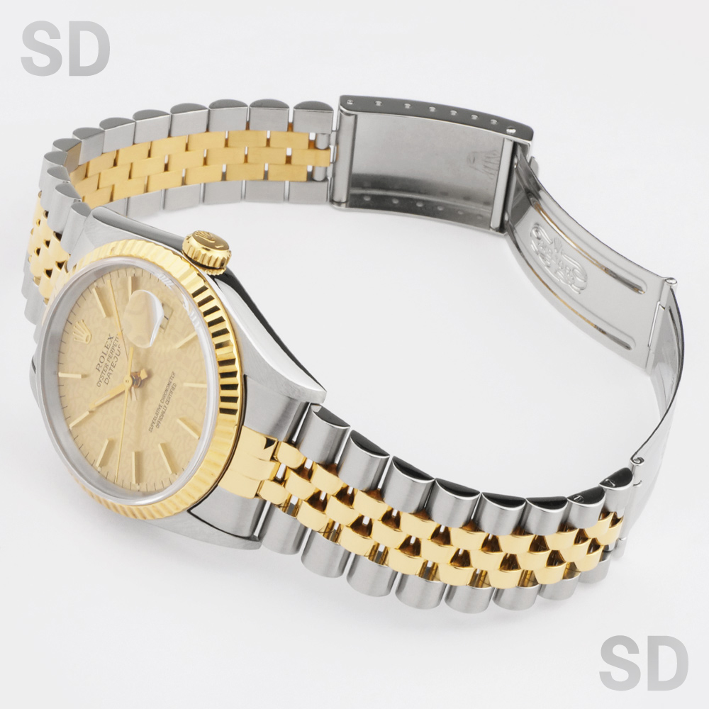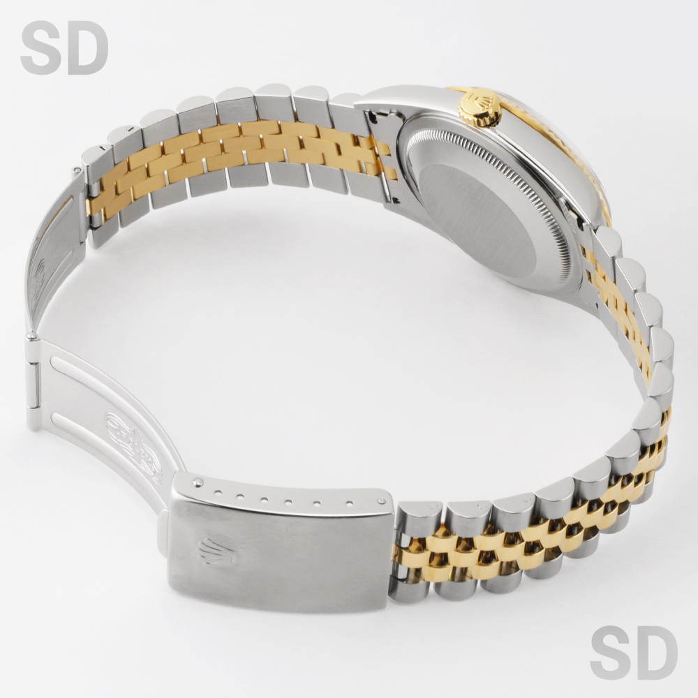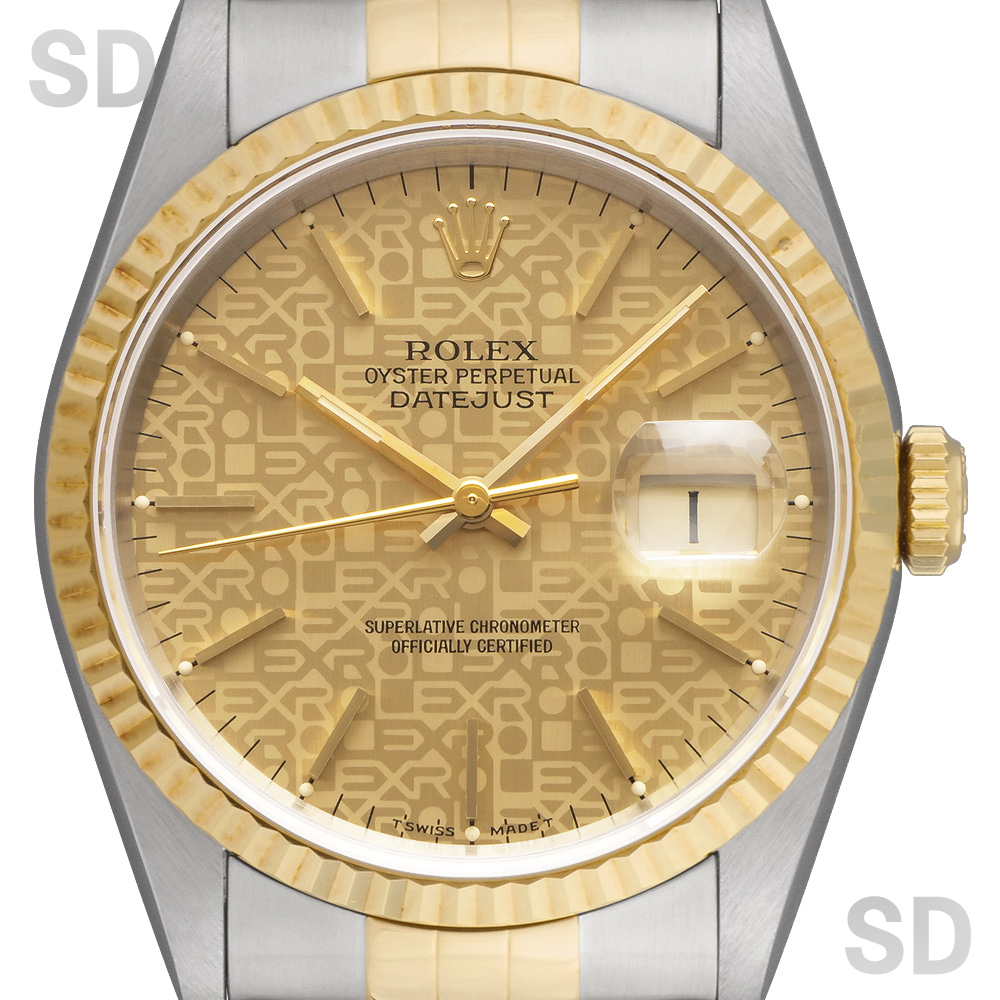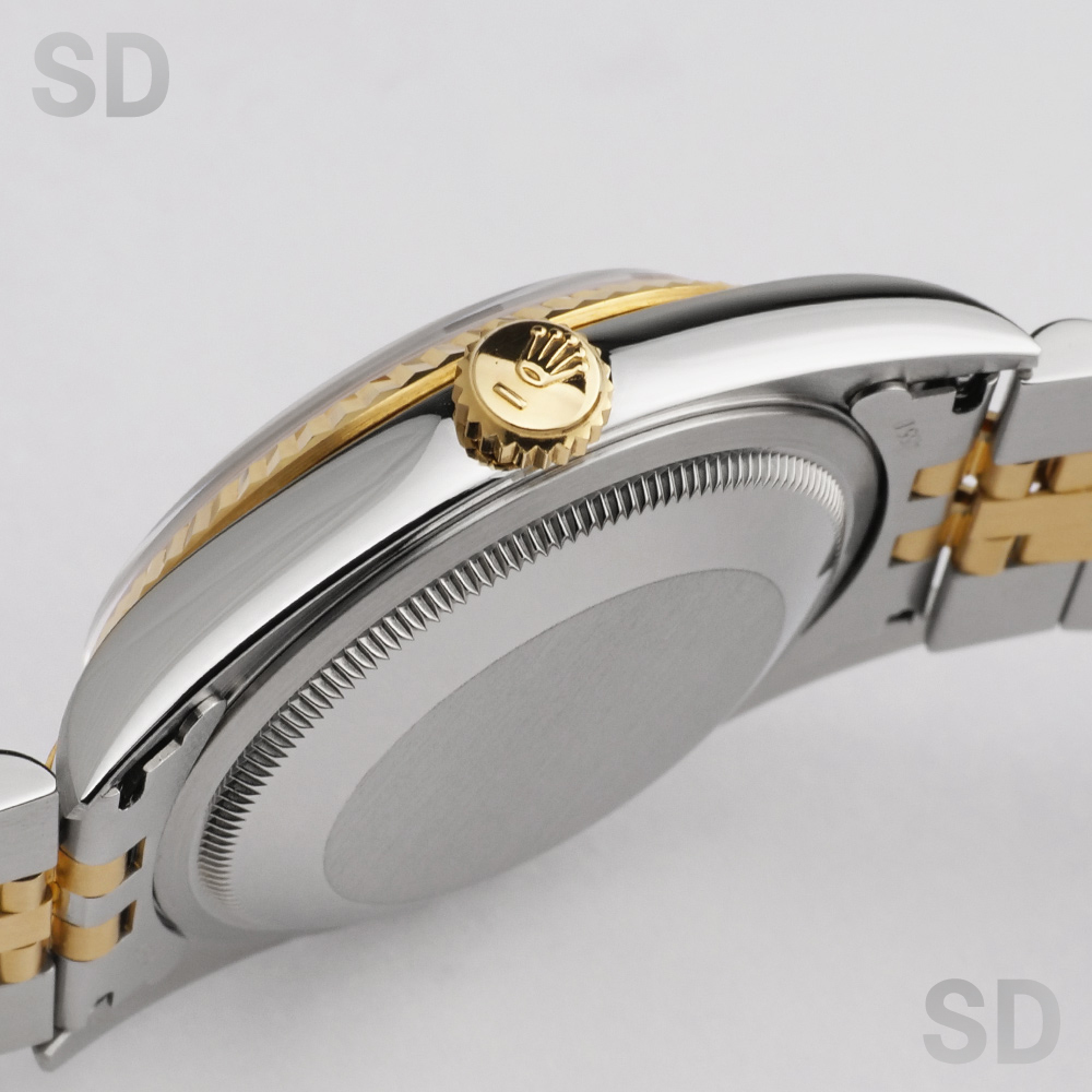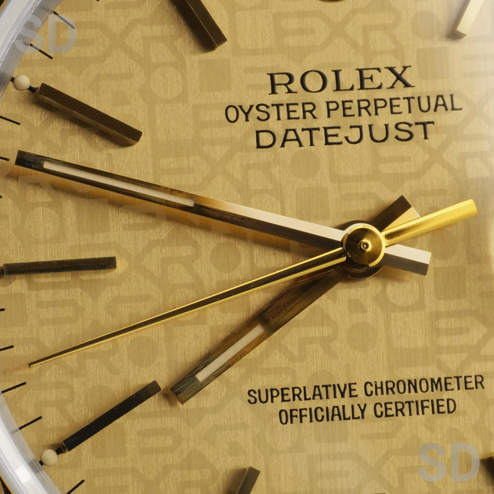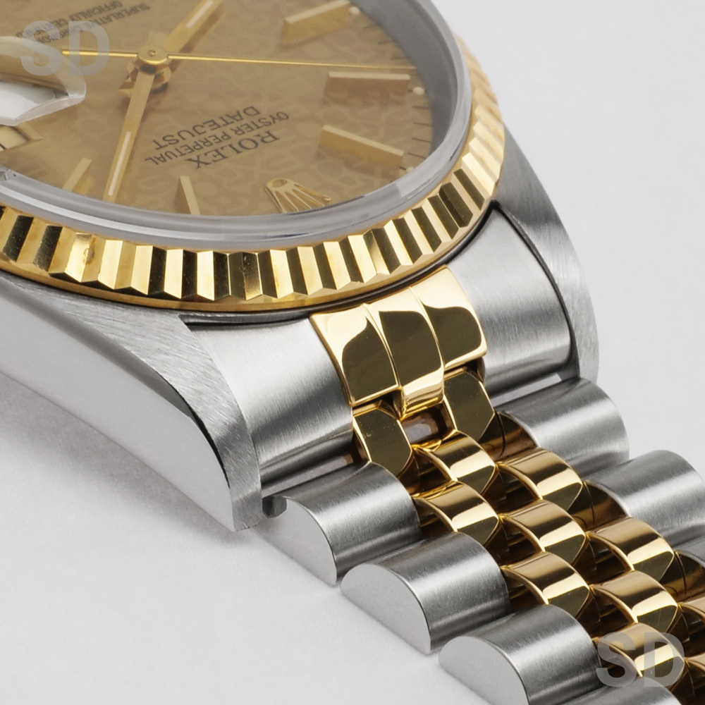 フルーテッドベゼルにジュビリーブレスレットをセットしたイエローゴールドコンビはデイトジャストの中でも代表格とされるデザイン。1990年代初期に”ロレックス×コンビ”から「ロレコン」と呼ばれ一世を風靡したこちらのモデルは、世代を超えて現在でも愛される定番モデルとなりました。