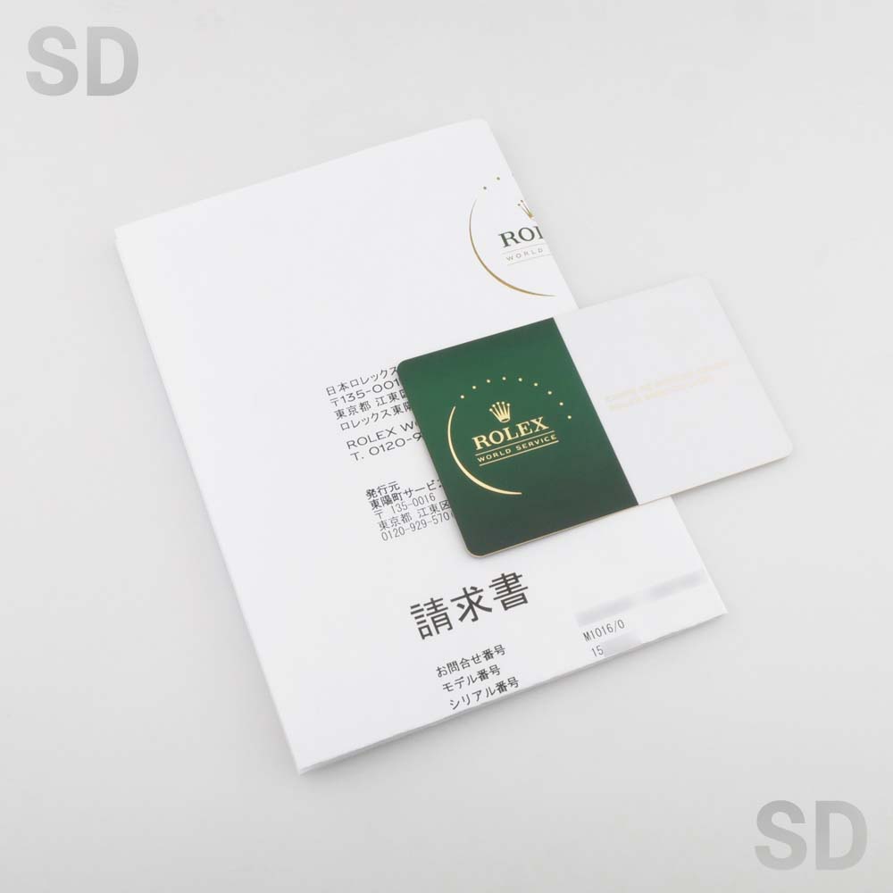 その他、2024年にメーカーにてメンテナンス及び外装仕上げ(研磨)を行っており、その際のNFC機能搭載ロレックスサービスカード(国際サービス保証書)と修理請求書が付属いたしますが、防水保証対象外となります。