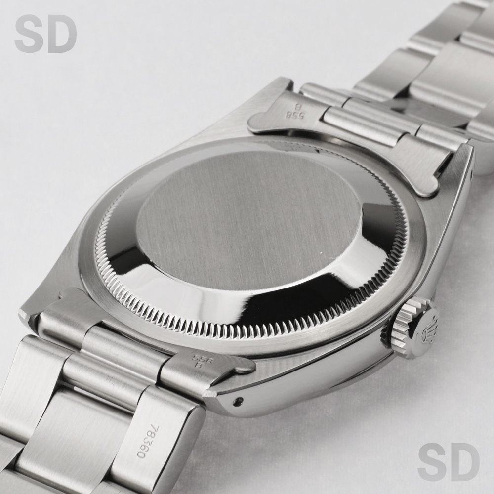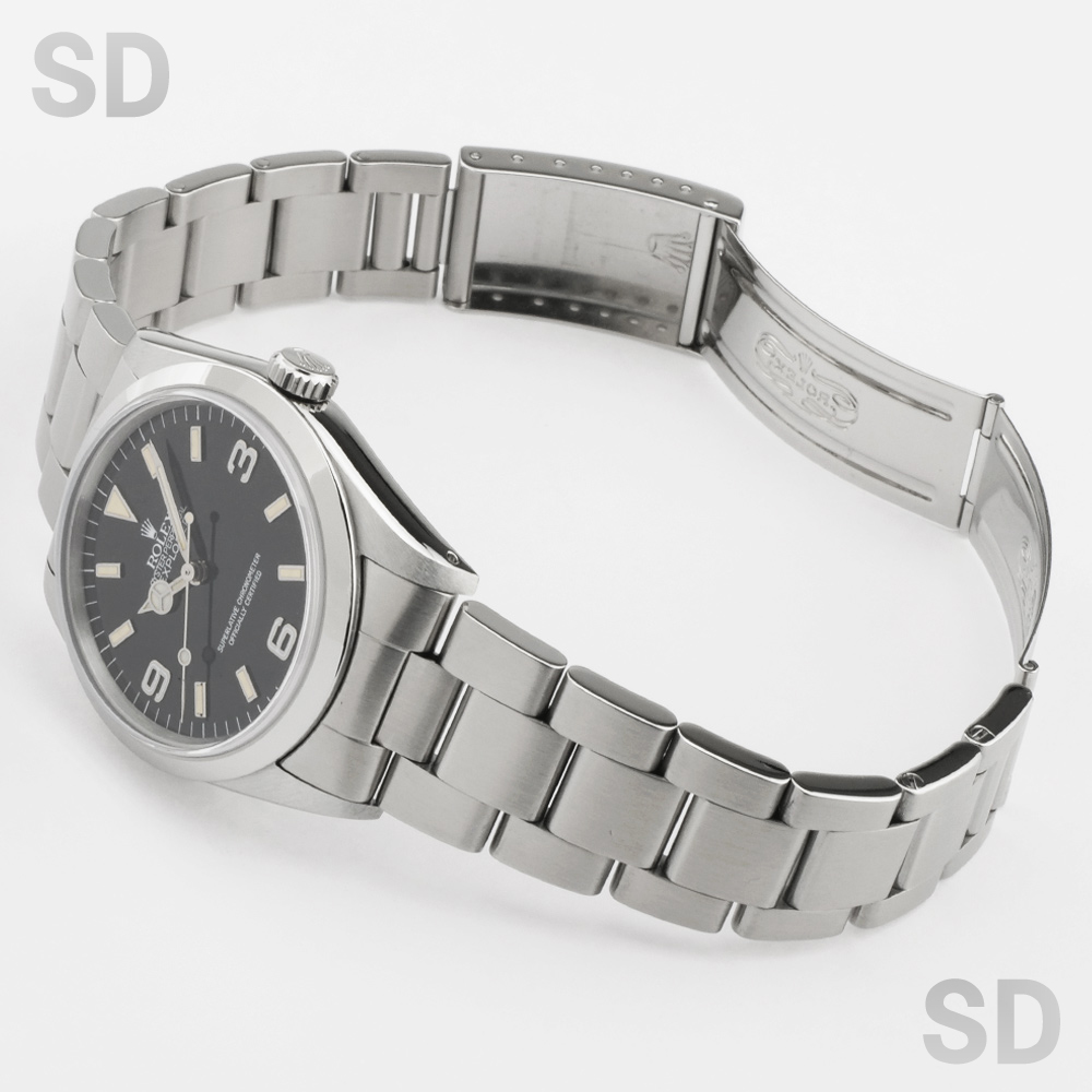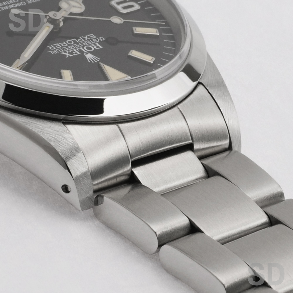 ロレックスを代表するスポーツモデルのひとつであるエクスプローラーIは、1953年の誕生以来、そのシンプルかつ機能美に溢れるデザインで、世界中の時計愛好家から長きにわたり支持を集めてまいりました。本個体は、文字盤・針ともにトリチウム夜光が採用された、いわゆる「オールトリチウム」仕様となっており、当時の雰囲気を色濃く残した一本です。また、ブレスレットにはシングルロック仕様が採用されており、現行モデルには見られないクラシカルなディテールも魅力のひとつです。