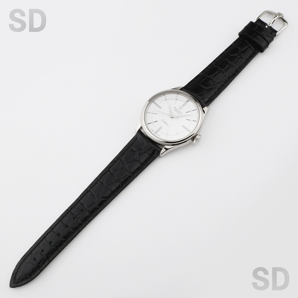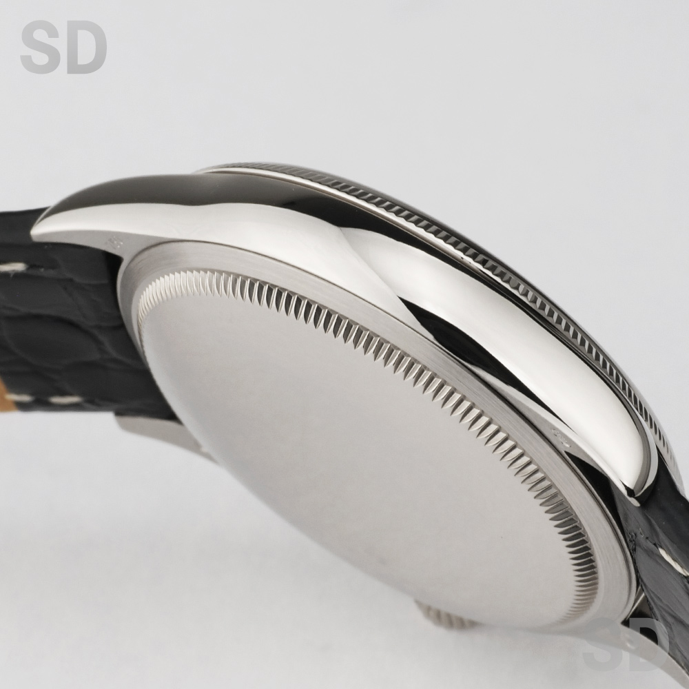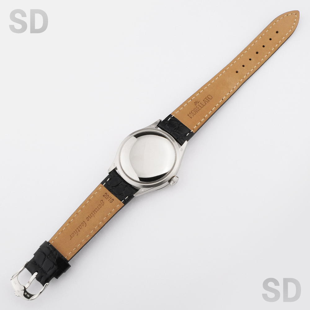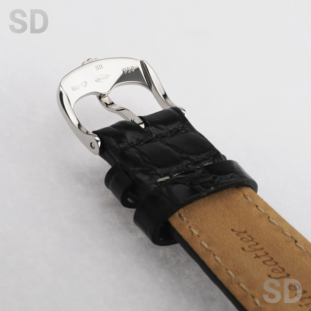 尾錠は純正のK18WG製ピンバックル。革ベルトは社外品となりますが、大きな使用感もなくそのままお使いいただけます。