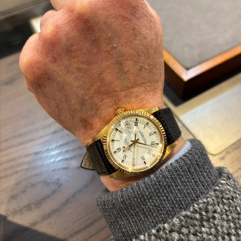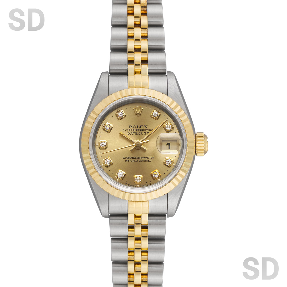 こちらの個体は2003年頃から2015年頃まで製造されていた旧型モデル。ロレックスの3大発明である「防水ケース」「自動巻き機構」「カレンダー機構」を搭載したデイトジャスト。レディースモデルの中で圧倒的な人気を誇り、素材・ダイヤル・サイズのバリエーションは他のモデルと比べ、数多く存在しております。山形に等間隔でカッティングされたギザギザの刻みのフルーテッドベゼルに、無垢専用のプレジデントブレスが装着。ケースやブレスにはホワイトゴールドを使用し、ダイヤルはグレーアラビア・ミリヤードダイヤがセットされた希少性の高い1本です。