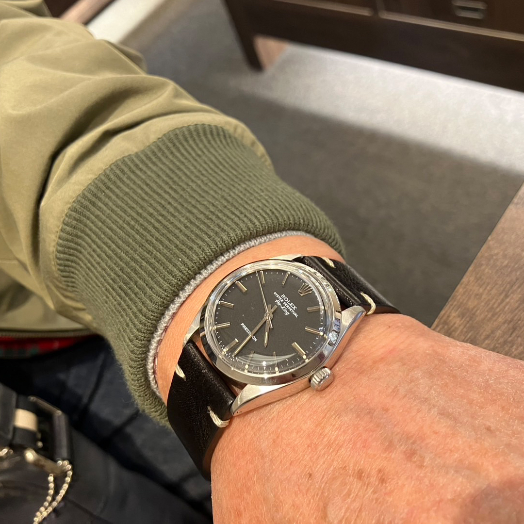 ベゼルはエッジ痩せを防ぐため、あえて仕上げ(研磨)は施しておりません。その他外装は研磨済みですので擦り傷小傷が残る程度で特筆すべきダメージは見受けられません。年式を考慮していただければコンディションは良好です。また、2023年9月に日本ロレックスにて内部点検とタイミング調整を済ませており、その際に発行された納品明細書も付属しております。