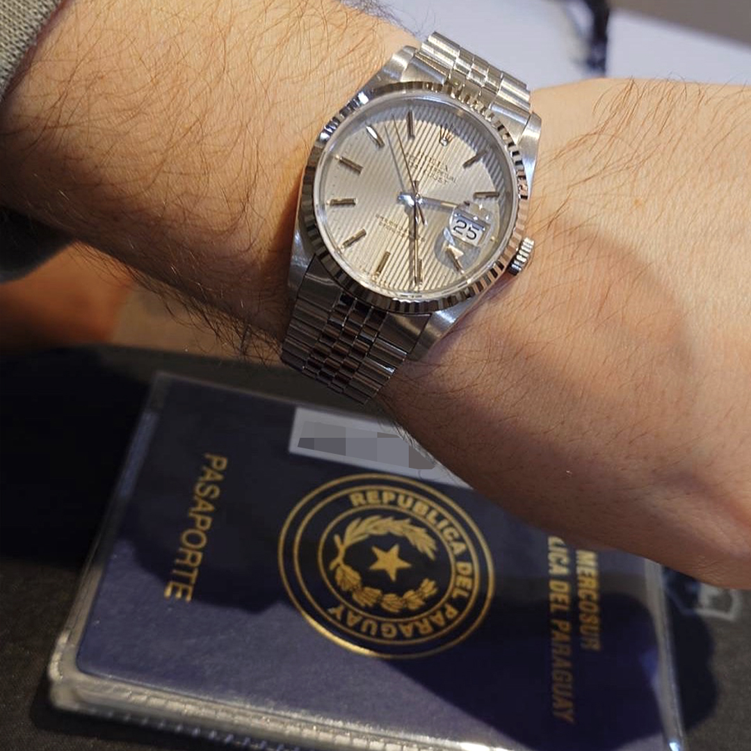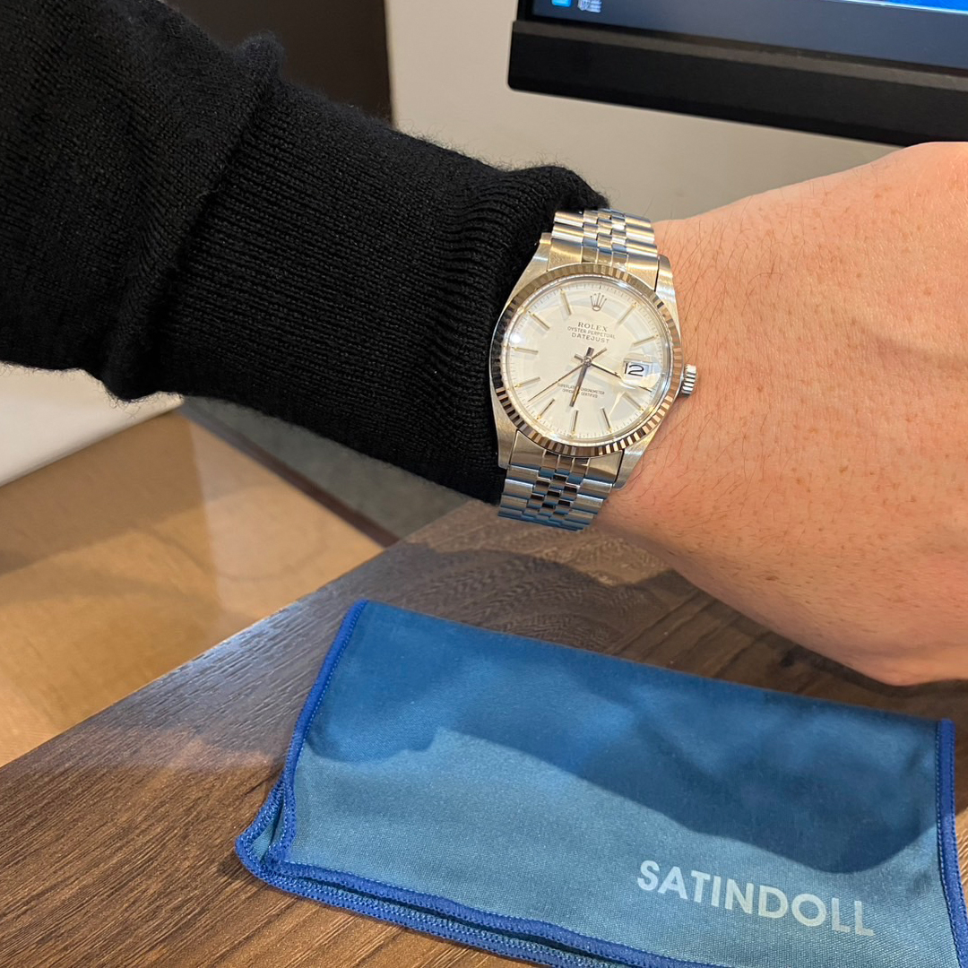 こちらの個体は2005年頃から2019年頃まで製造されていた旧型モデル。ロレックスの3大発明である「防水ケース」「自動巻き機構」「カレンダー機構」を搭載したデイトジャスト。メンズモデルの中でも高い人気を誇り、素材・ダイヤル・サイズのバリエーションは他のモデルと比べ、数多く存在しております。山形に等間隔でカッティングされたギザギザの刻みのフルーテッドベゼルに、コンシールドクラスプと呼ばれるバックルが目立たない作りが特徴のジュビリーブレスが装着。ベゼルにはホワイトゴールドを使用し、ダイヤルはブラック・アラビアをセットした珍しい1本です。