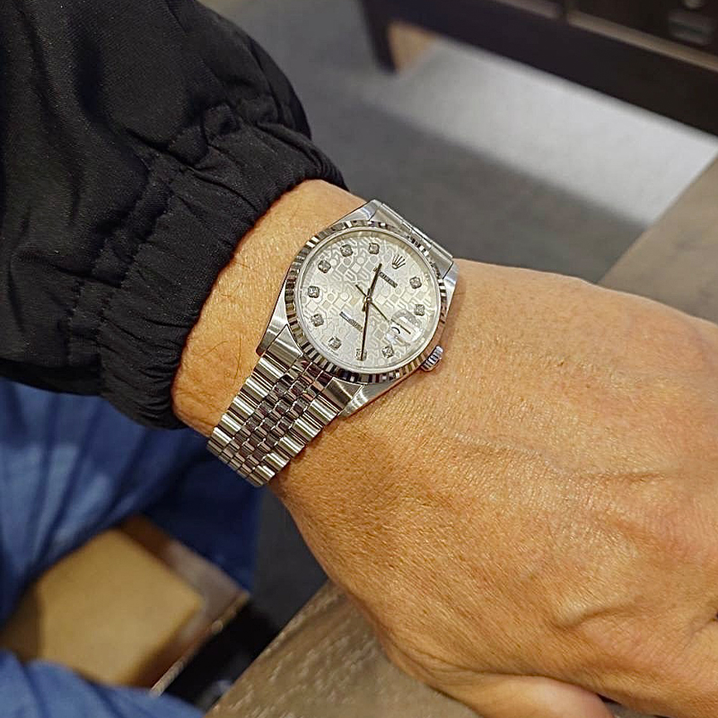 状態です。ベゼルはエッジ痩せを防ぐため、あえて仕上げ(研磨)は施しておりません。その他外装は修理工房にて研磨済みですので擦り傷小傷が残る程度で特筆すべきダメージは見受けられません。コンディションは良好です。内部は弊社にて動作チェックを行い、精度、リューズ操作ともに問題ございませんでした。サテンドール独自の保証も設けておりますので、中古品ではございますが安心してお使い頂ける状態となっております。付属品は国際保証カード、ロレックス純正BOXが付いております。