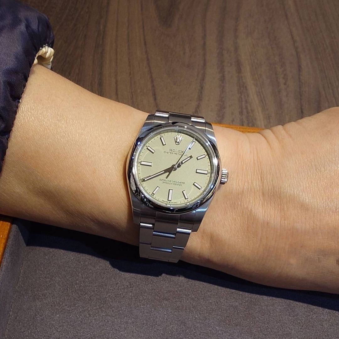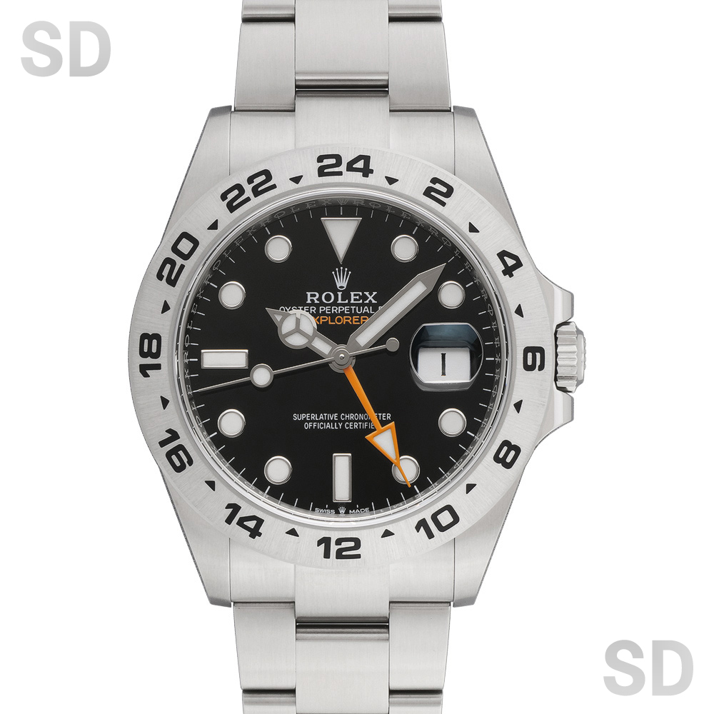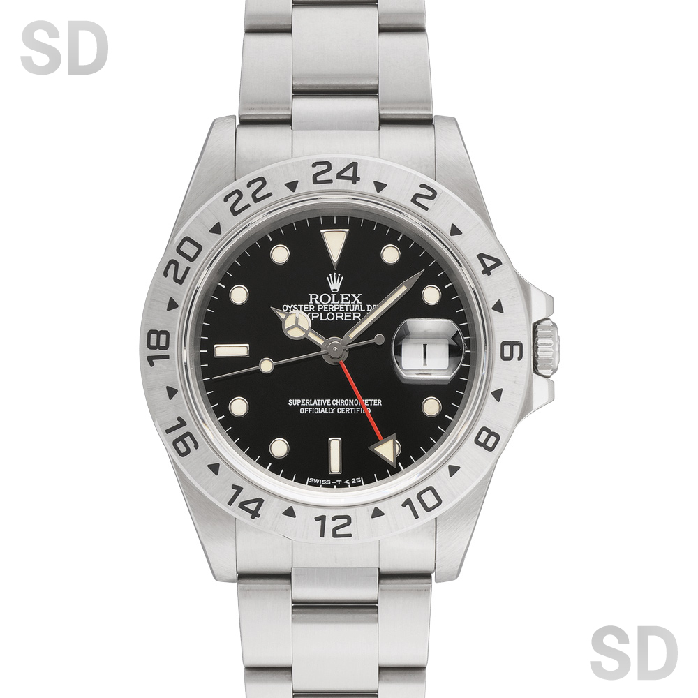 エクスプローラー2としては3代目となるこちらのモデル。おおよそ1988年から2011年までの長期的な製造でコレクションのデザインを確立しました。エクスプローラー2としては最後の40mmケースとなり、後継機モデルがサイズアップしてしまったことで現在でも根強くファンがおります。また、こちらの個体は、陶器のような光沢を放つ、通称「ポーセリン」ダイヤルがセットされた個体です。使い勝手の良いサイズ感とツールウォッチとしての視認性の良さはスポーツモデルの中でも秀でており、爽やかで清楚感溢れる1本です。