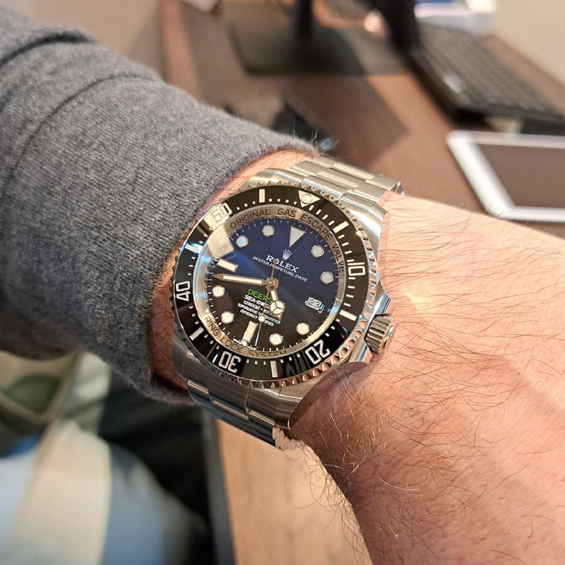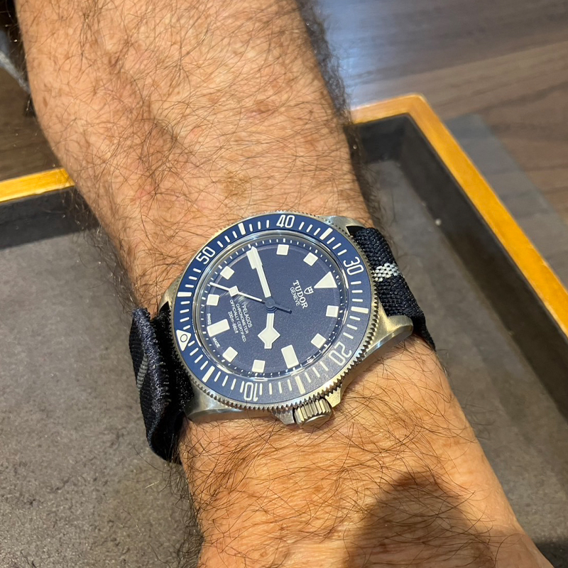 ベゼルに僅かな小傷とリューズガードにペン先程度の打ち傷がございますが、どれも大きく目立つものではありません。