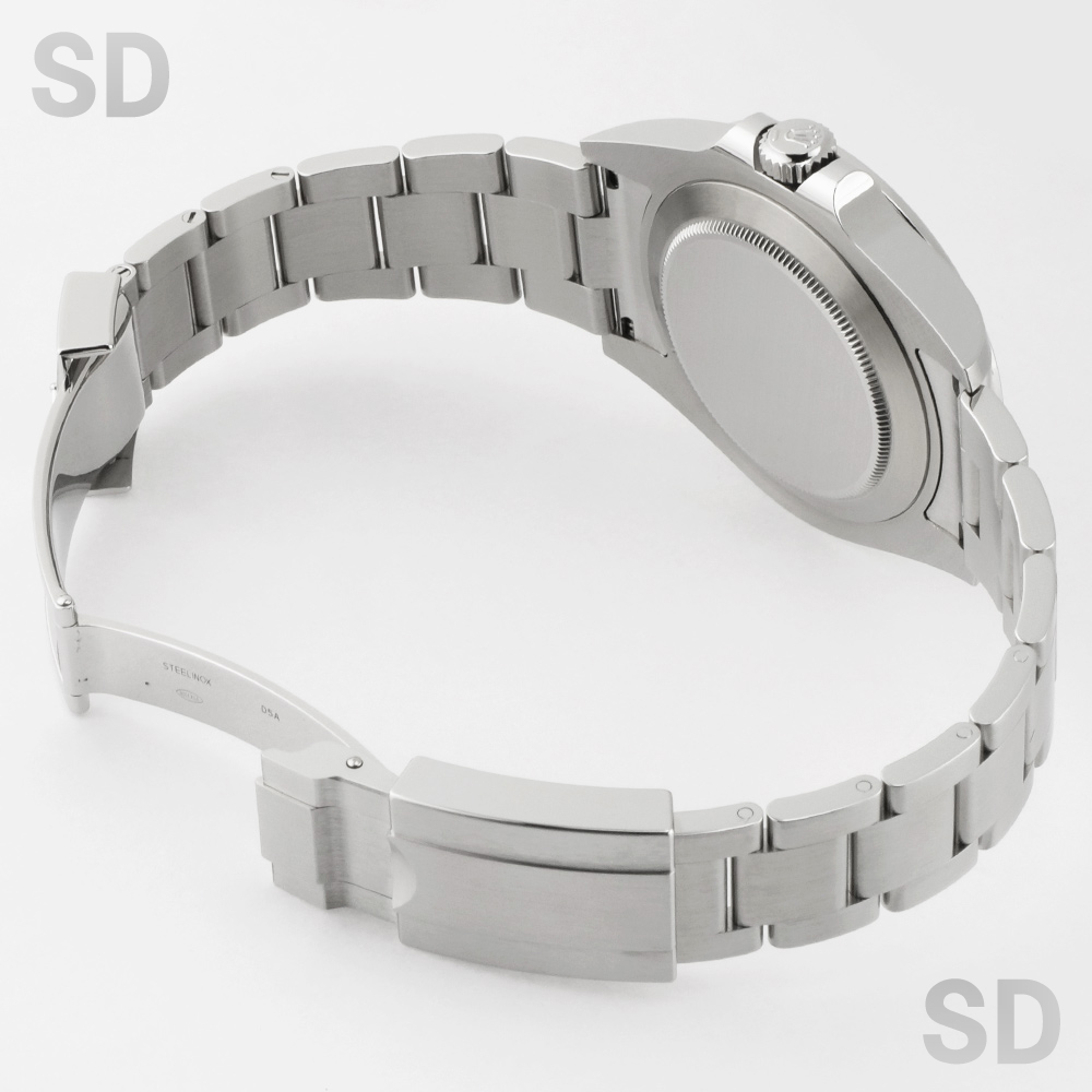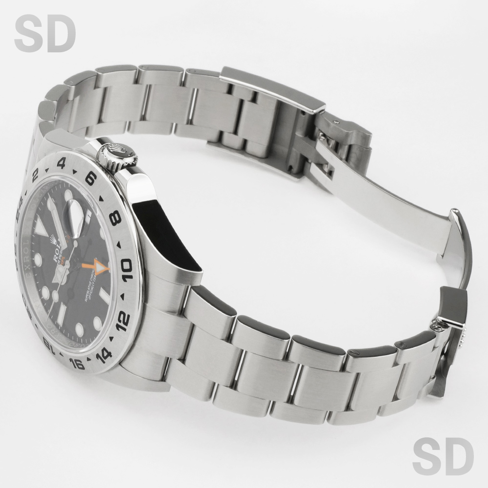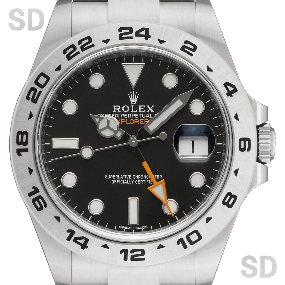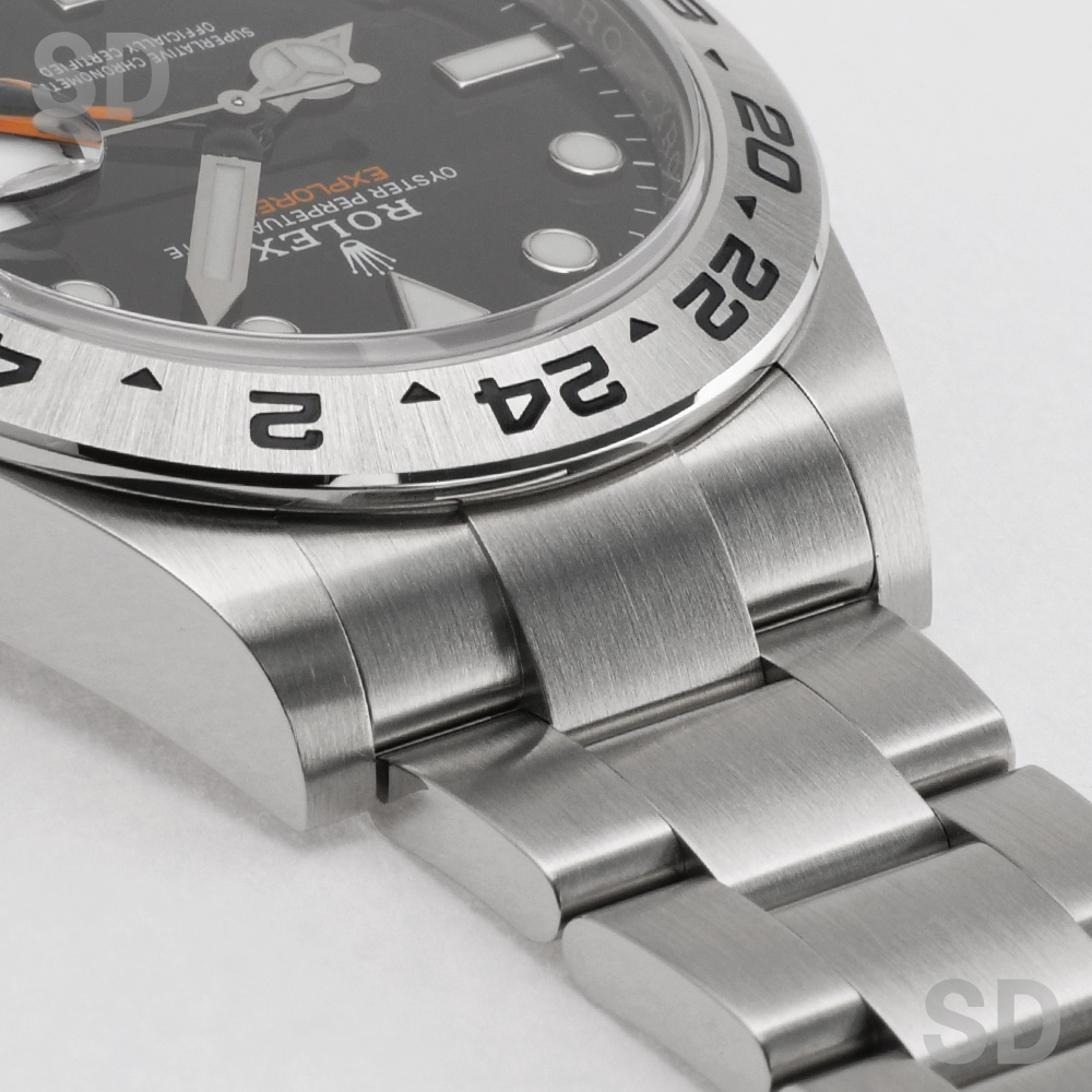 エクスプローラーII は、探検家や冒険家のために設計された堅牢かつ実用性に優れたモデルで、特にRef.216570は42mmケースを採用した現行世代ならではの存在感と視認性の高さが魅力です。ブラックダイアル仕様は、精悍で落ち着いた印象を与えるデザインとなっており、オレンジカラーの24時間針とのコントラストが美しく、スポーティーでありながら上品さも兼ね備えています。